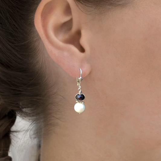 Zilveren Oorbellen met Granaat en Parel – Handgemaakt