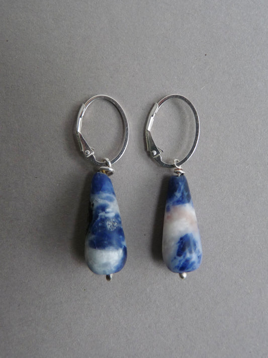 Lange zilveren oorbellen met Sodaliet druppels