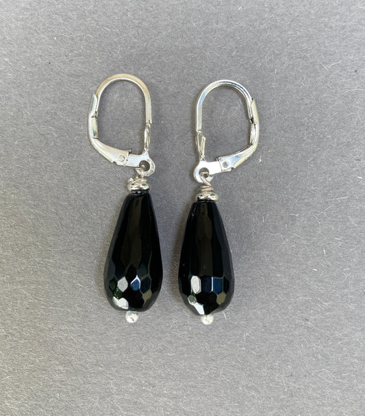 Zilveren onyx druppel oorbellen met klaphaakjes