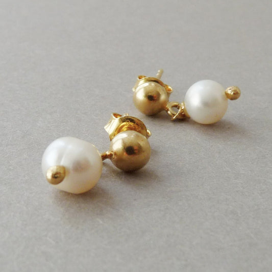 Gouden Oorknopjes met Zoetwater Parel – Elegante Parel Oorbellen