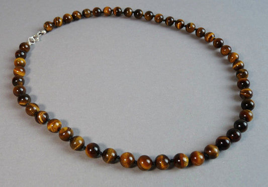 Tijgeroog heren ketting – warme basis kralenketting voor dagelijks dragen