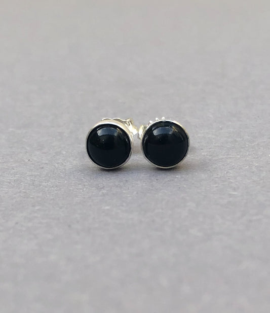 Onyx Oorknopjes voor heren in Sterling Zilver (per stuk)
