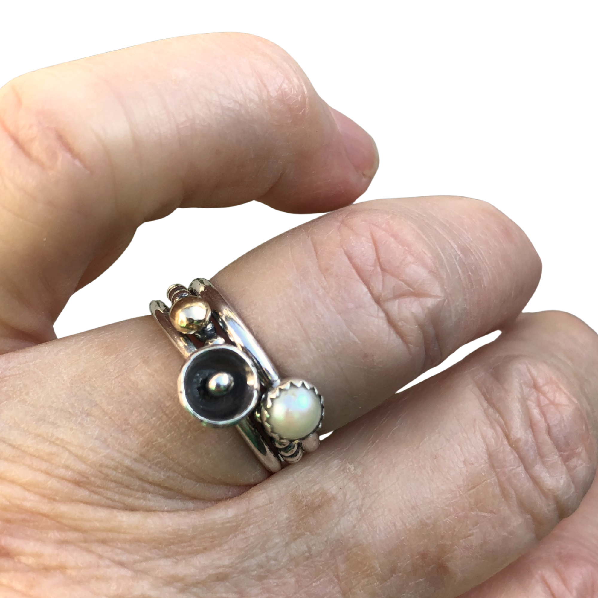 Gouden stapelring met Koraal – handgemaakte zilveren aanschuif ring
