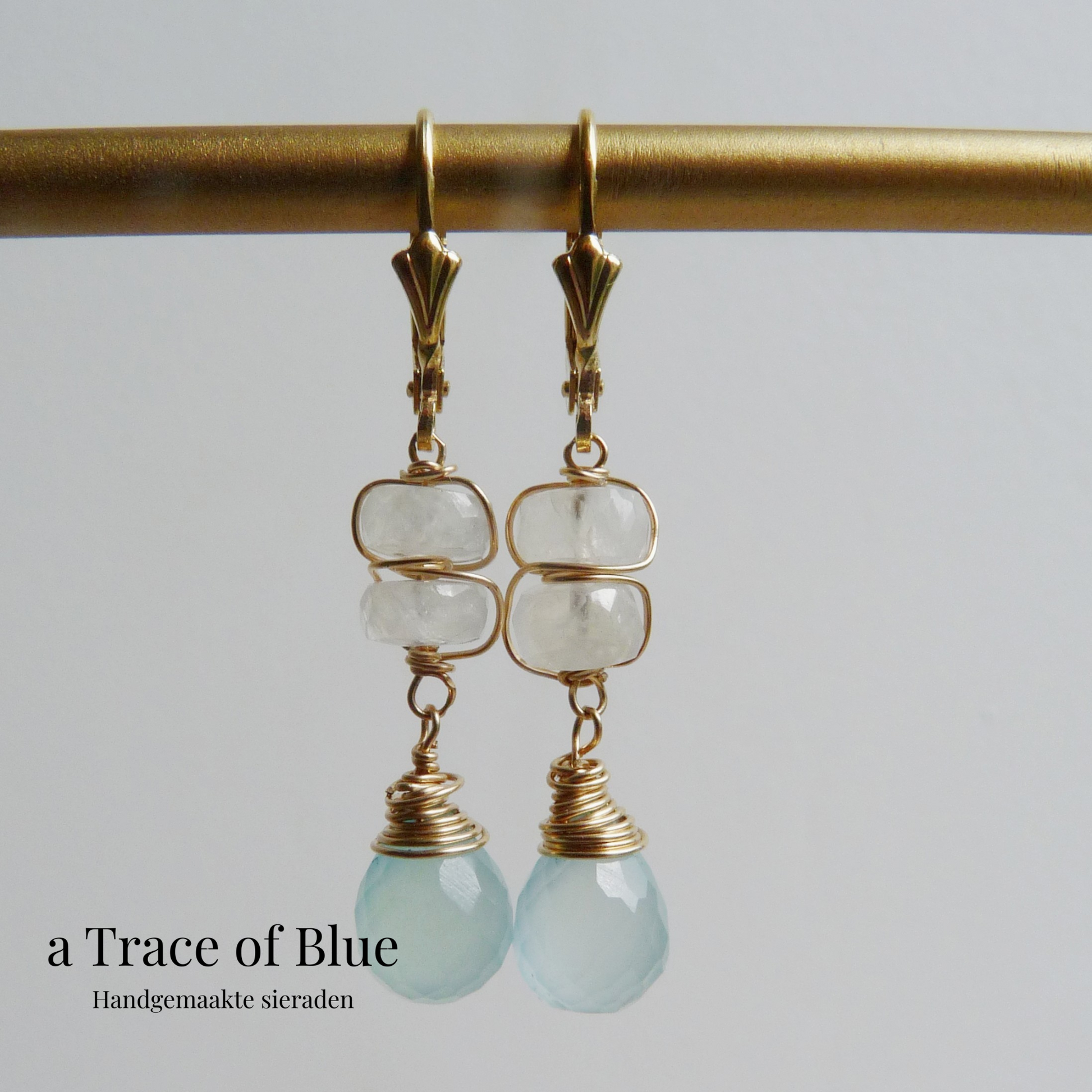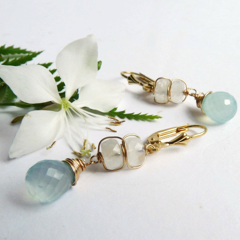 14 Karat goldgefüllte Ohrringe mit Mondstein und blauem Calcedon