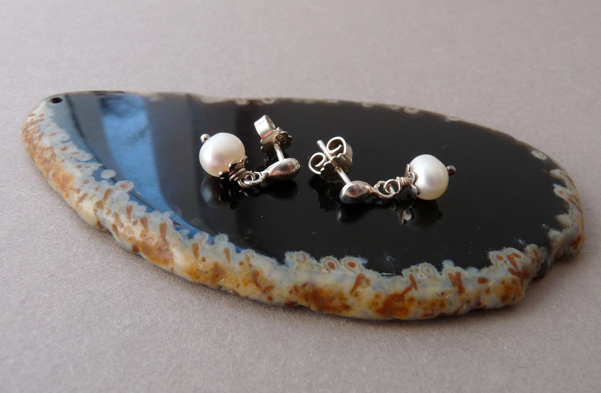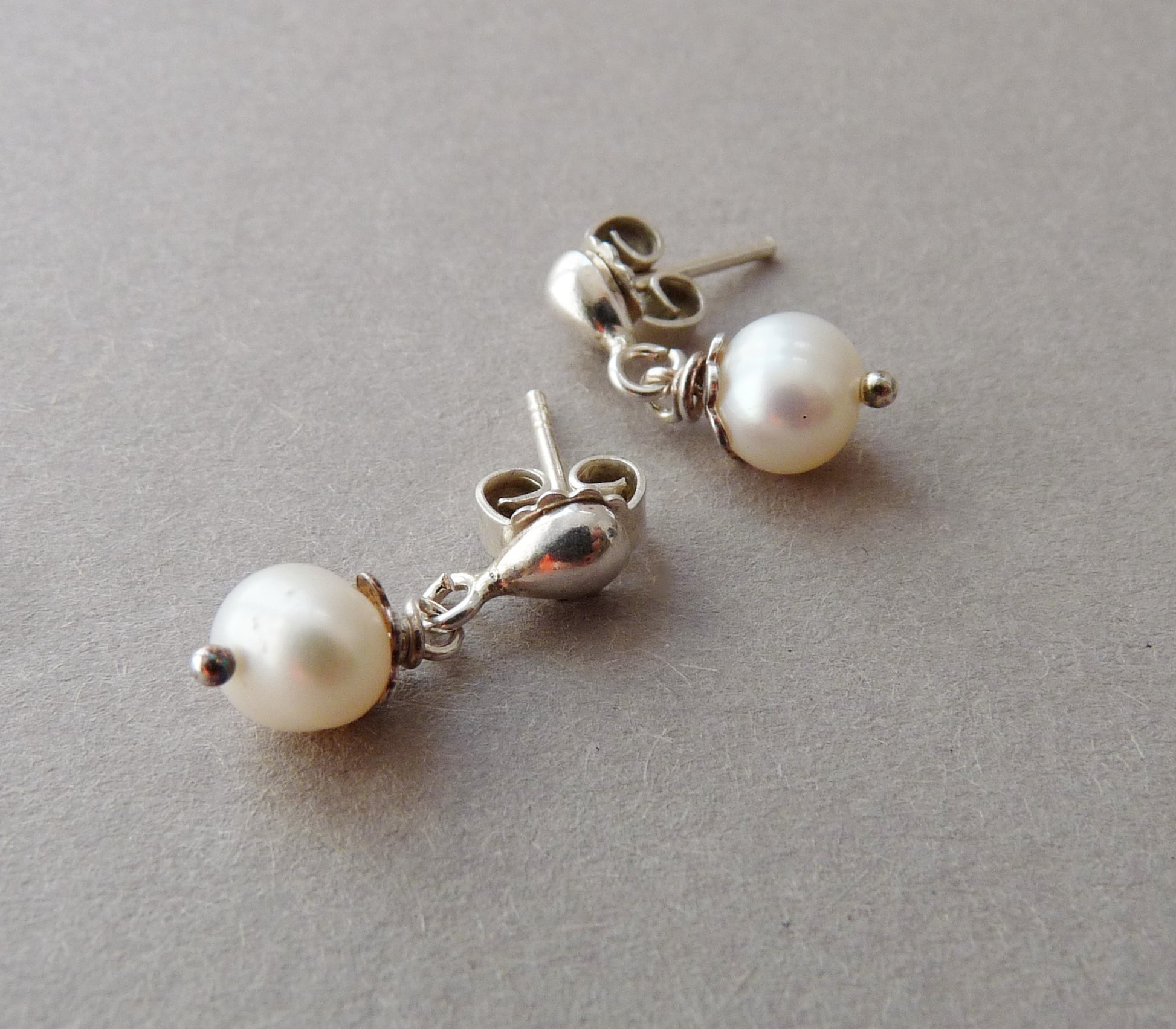 Brautohrringe Perle – Silberohrstecker | eine Spur von Blau