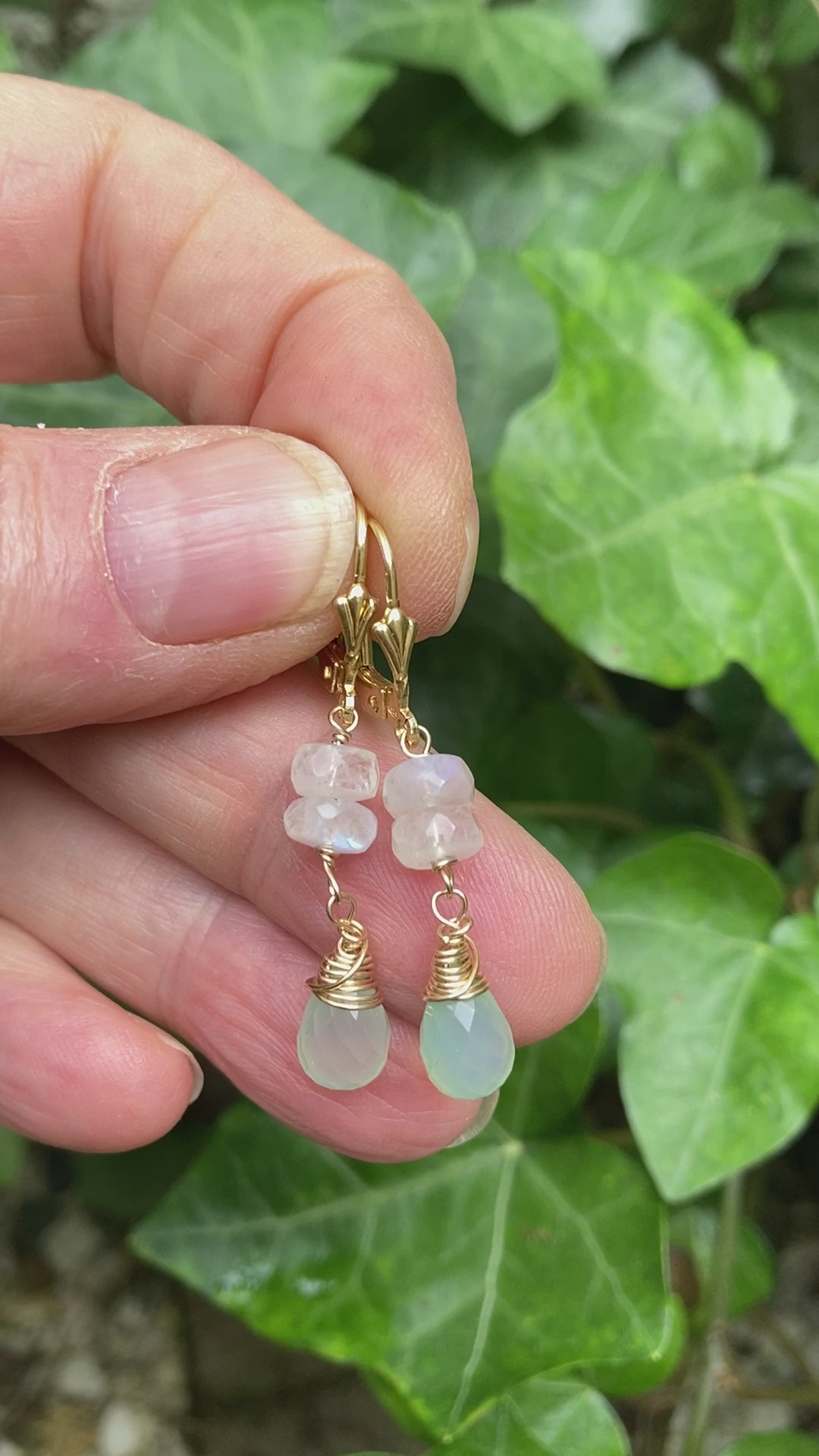 14K Goldfilled Ohrhänger mit Mondstein und blauem Calcedon