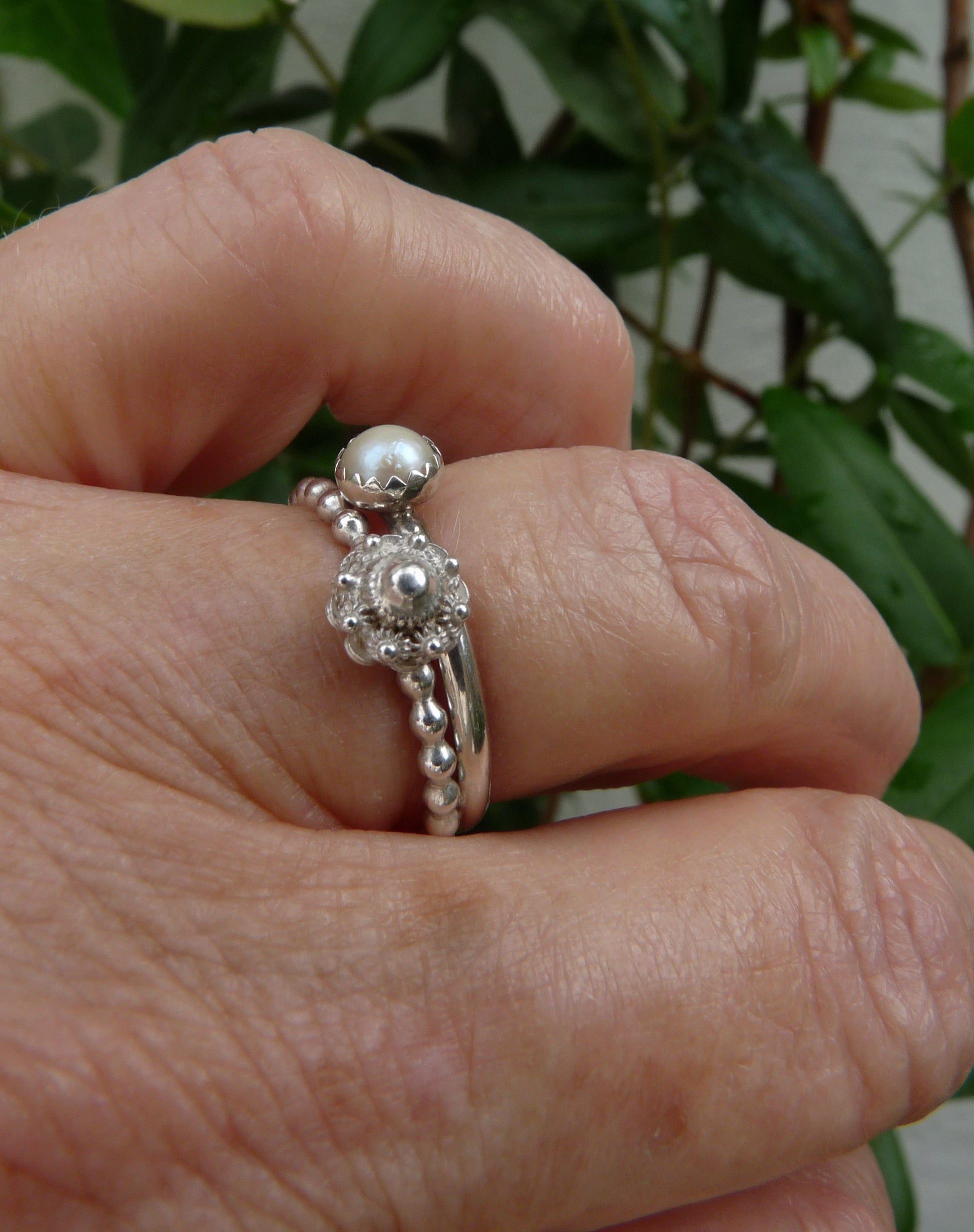 Das Heritage & Elegance Set kombiniert einen edlen silbernen Perlendrahtring mit Zeelandknoten (6 mm) und einen dezenten Schiebering mit Süßwasserperle (5 mm). Zusammen bilden sie eine stilvolle Anspielung auf das niederländische Erbe mit einem modernen Touch.