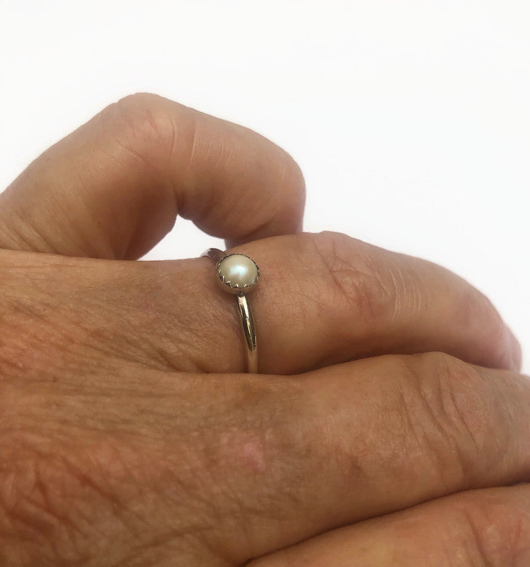 Ein minimalistischer silberner Schiebering mit einer glänzenden 5 mm Süßwasserperle – zeitlos und elegant.