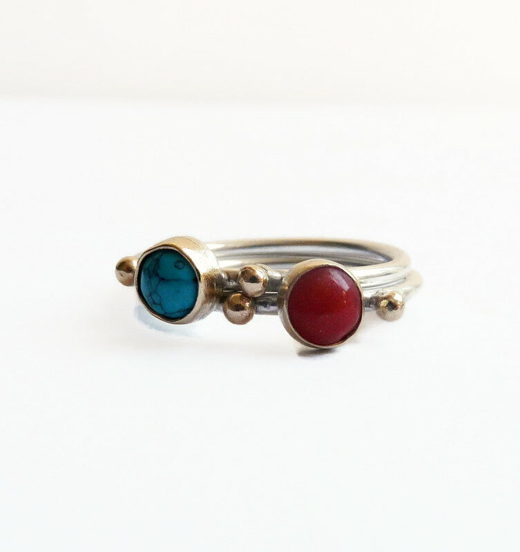 Stapelbare Goldringe mit Koralle und Türkis – Handgefertigt | Meer- und Korallenset