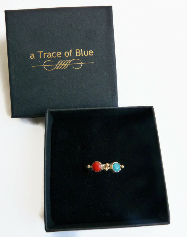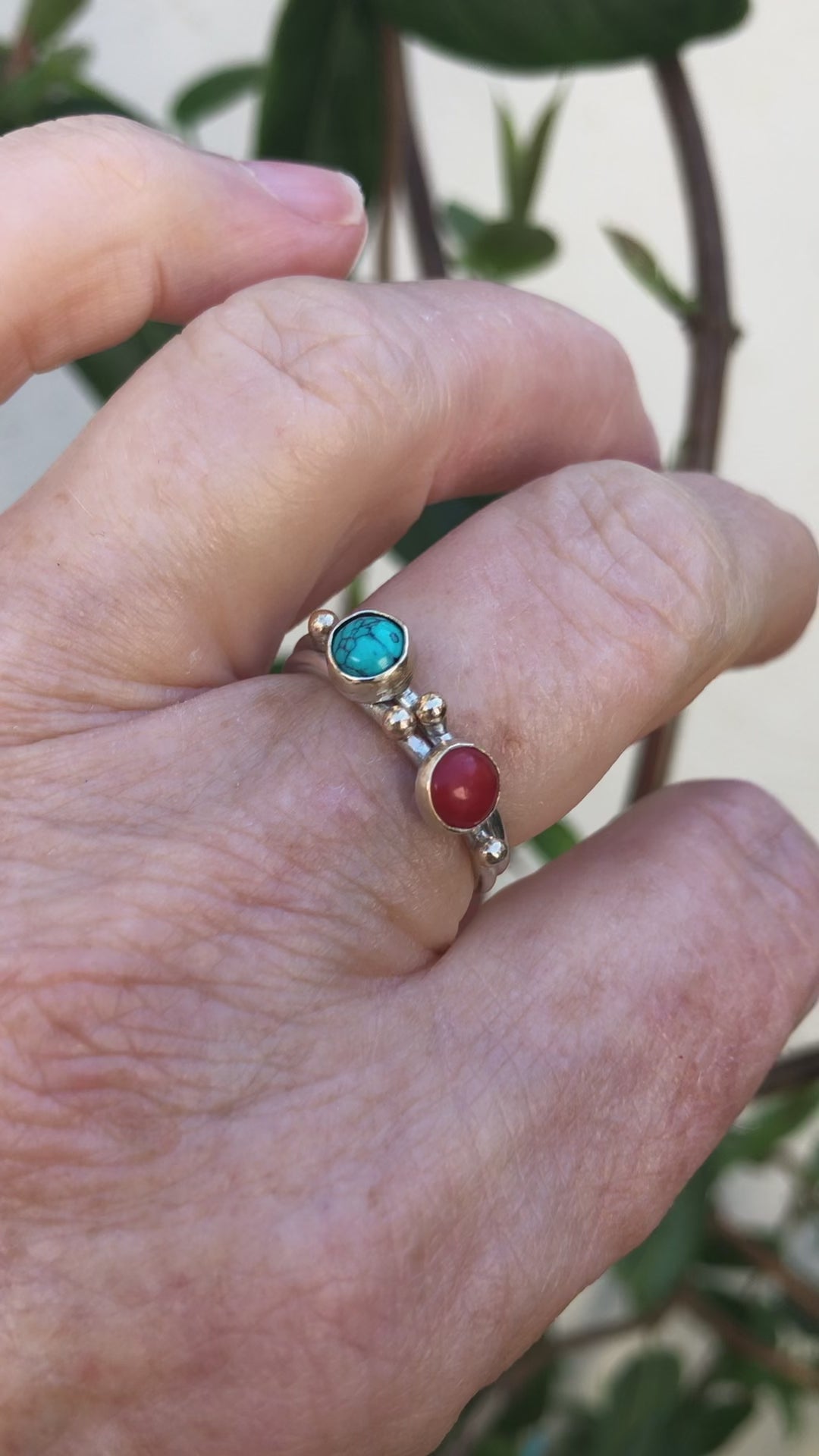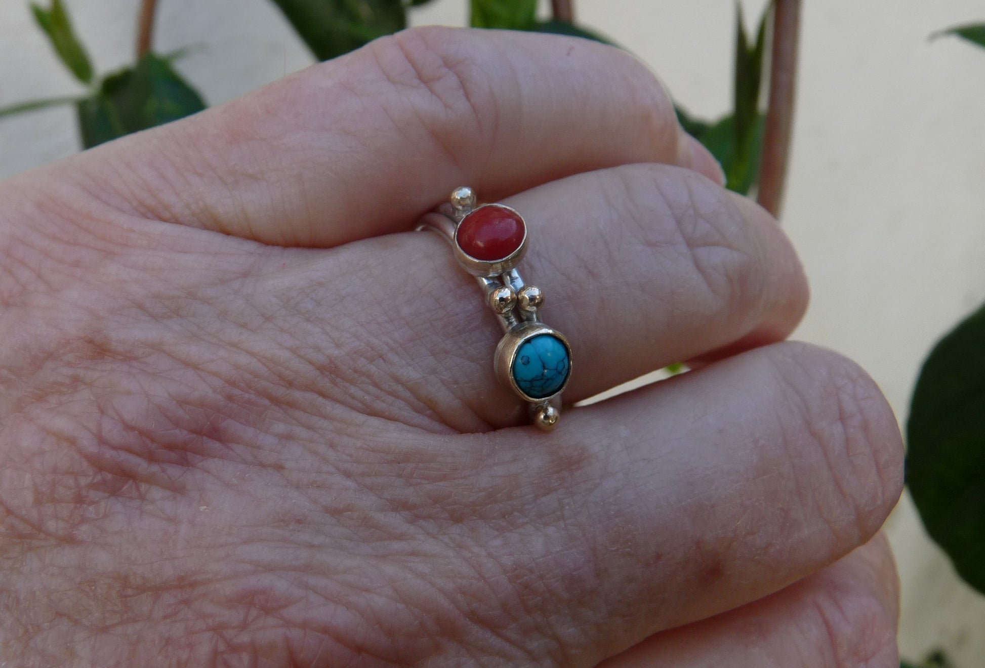 Bringen Sie die Wärme und Farbe des Sommers in Ihre Schmucksammlung mit dem Sea & Coral Set – einem handgefertigten stapelbaren Ringset aus Silber und 14-karätigem Gold, verziert mit leuchtenden Korallen und Türkisen. Zwei einzigartige Ringe, die zusammen ein farbenfrohes und elegantes Ensemble bilden, aber auch einzeln an Ihrer Hand funkeln.