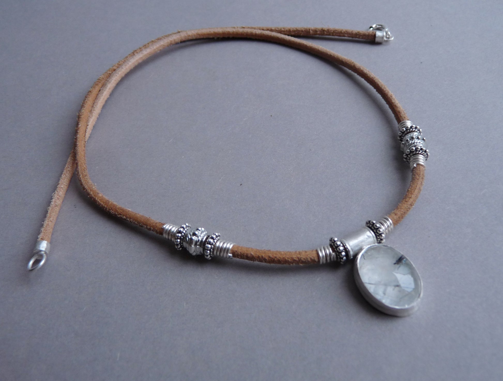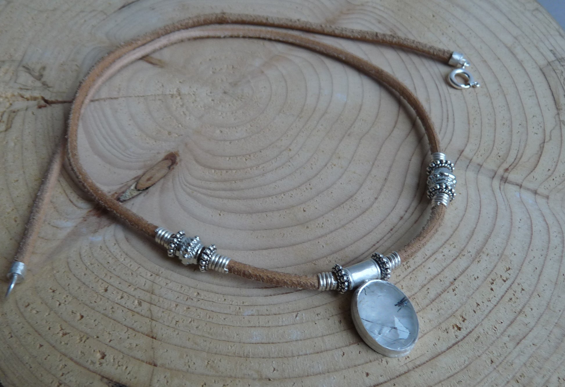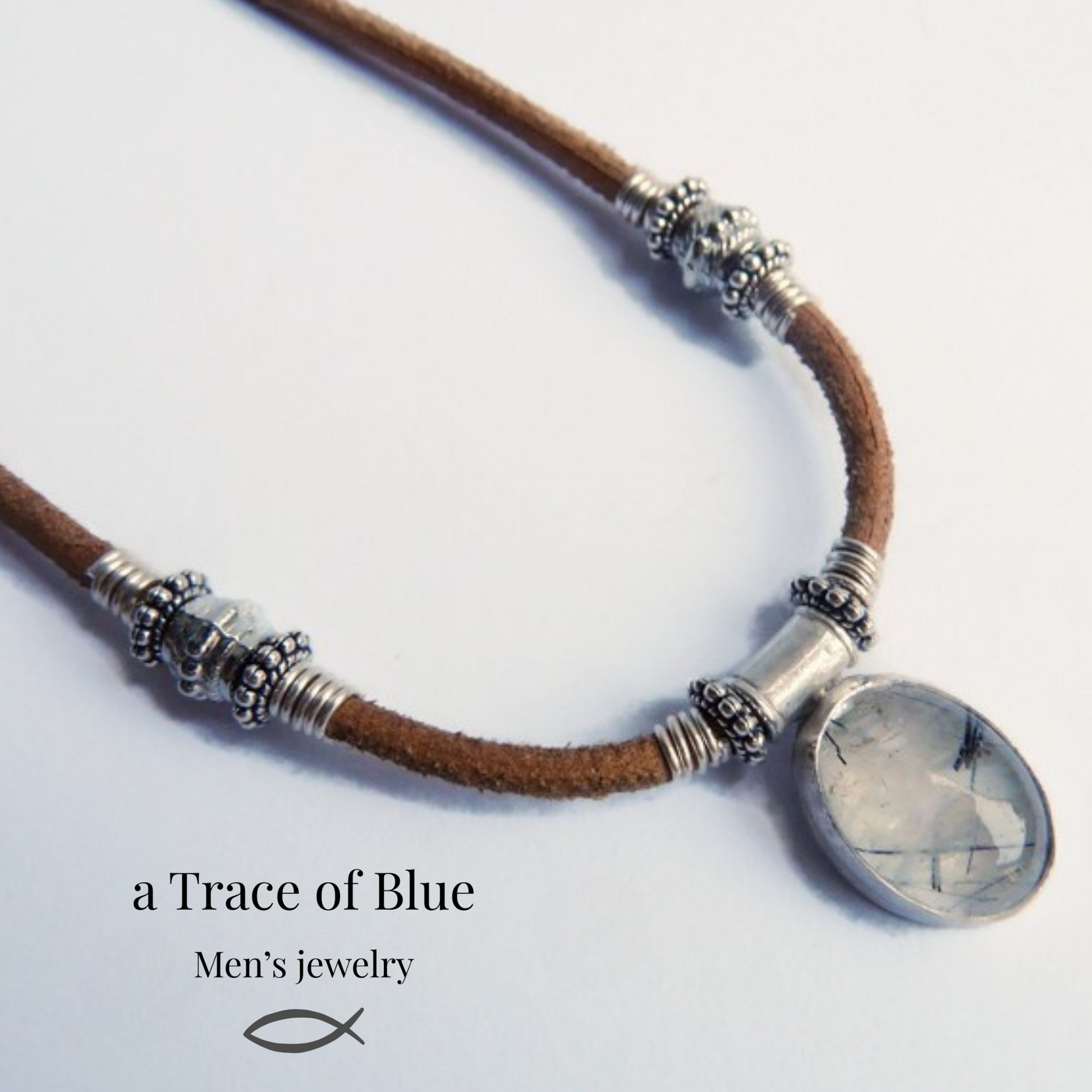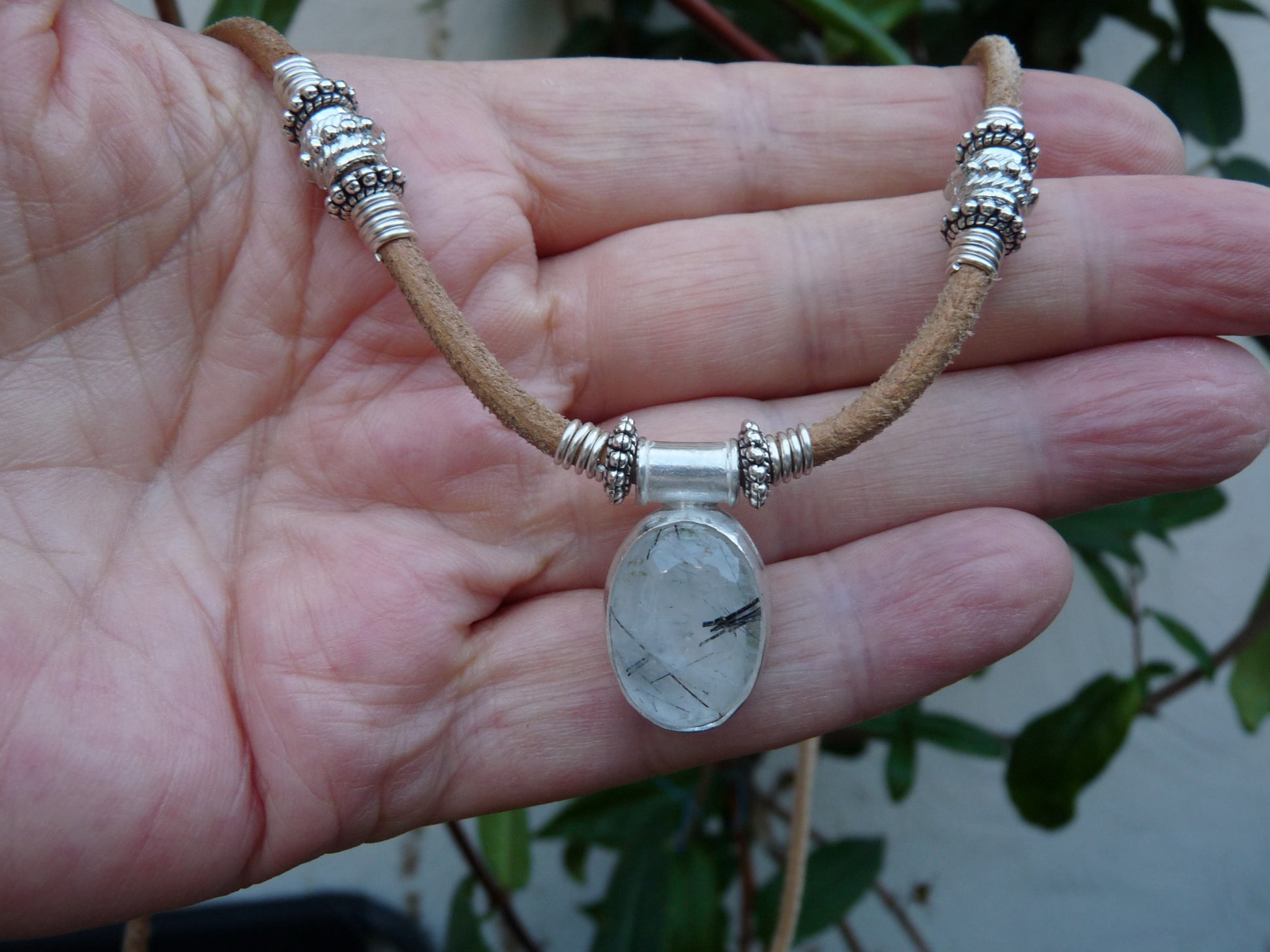 Herrenhalskette - Lederkette mit silbernem Turmalinquarz-Anhänger