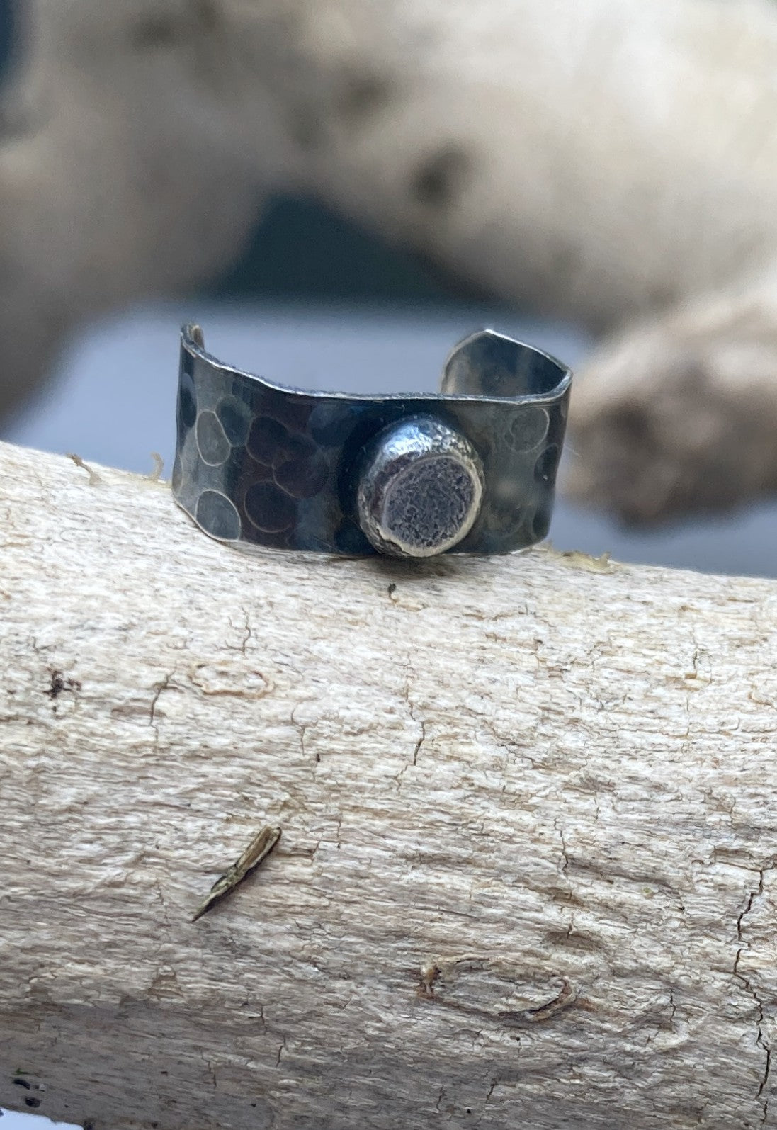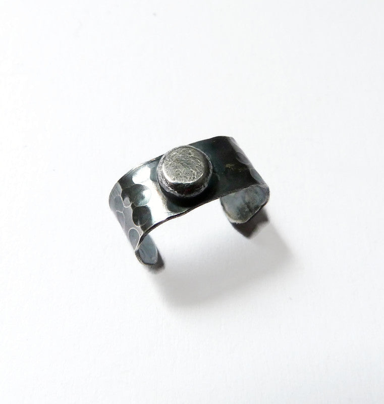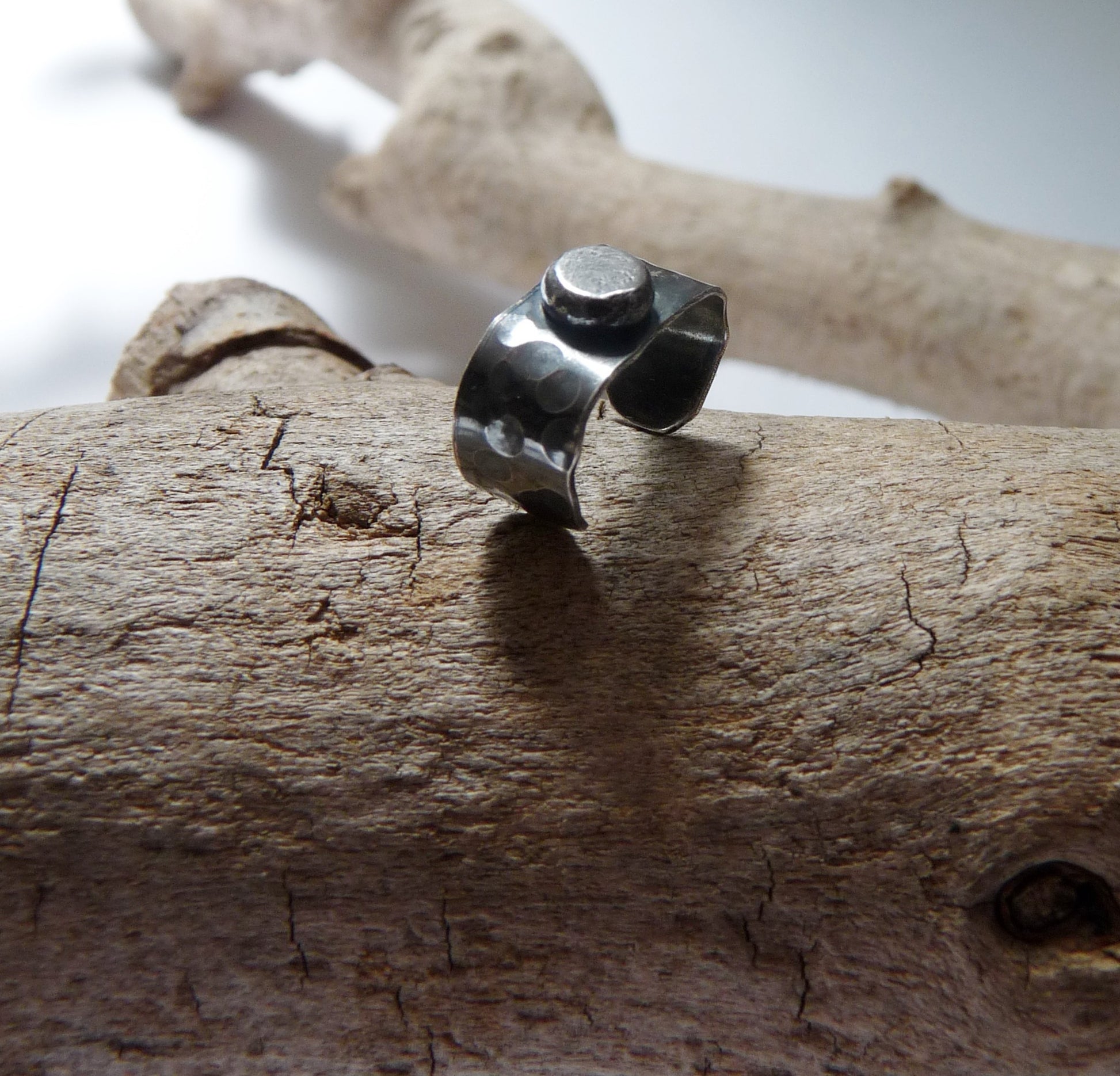 Ein einzigartiger Herren-Ohrring aus Sterlingsilber. Dieser Ear Cuff ist für das rechte oder linke Ohr geeignet, lässt sich leicht tragen und erfordert keine Piercings. Es ist ein handgefertigtes Design. Dieser Ohrring wurde oxidiert (abgedunkelt), um alle Details hervorzuheben.