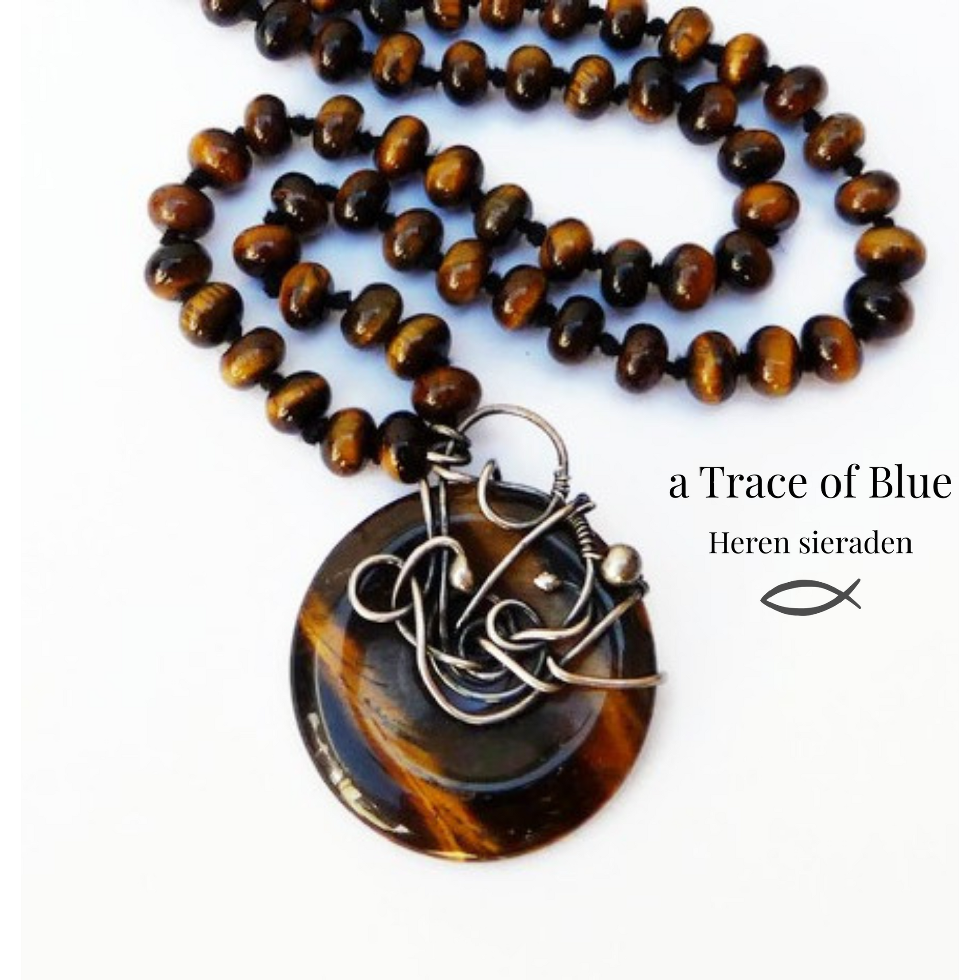 Eine handgeknüpfte Herrenhalskette mit sorgfältig ausgewählten Tigerauge-Perlen. Die warmen, erdigen Töne der Tigerauge-Perlen strahlen natürliche Kraft und Energie aus und mit einer Tropfenlänge von ca. 70 cm eignet sich dieses Schmuckstück ideal zur Kombination mit mehreren Herrenketten.