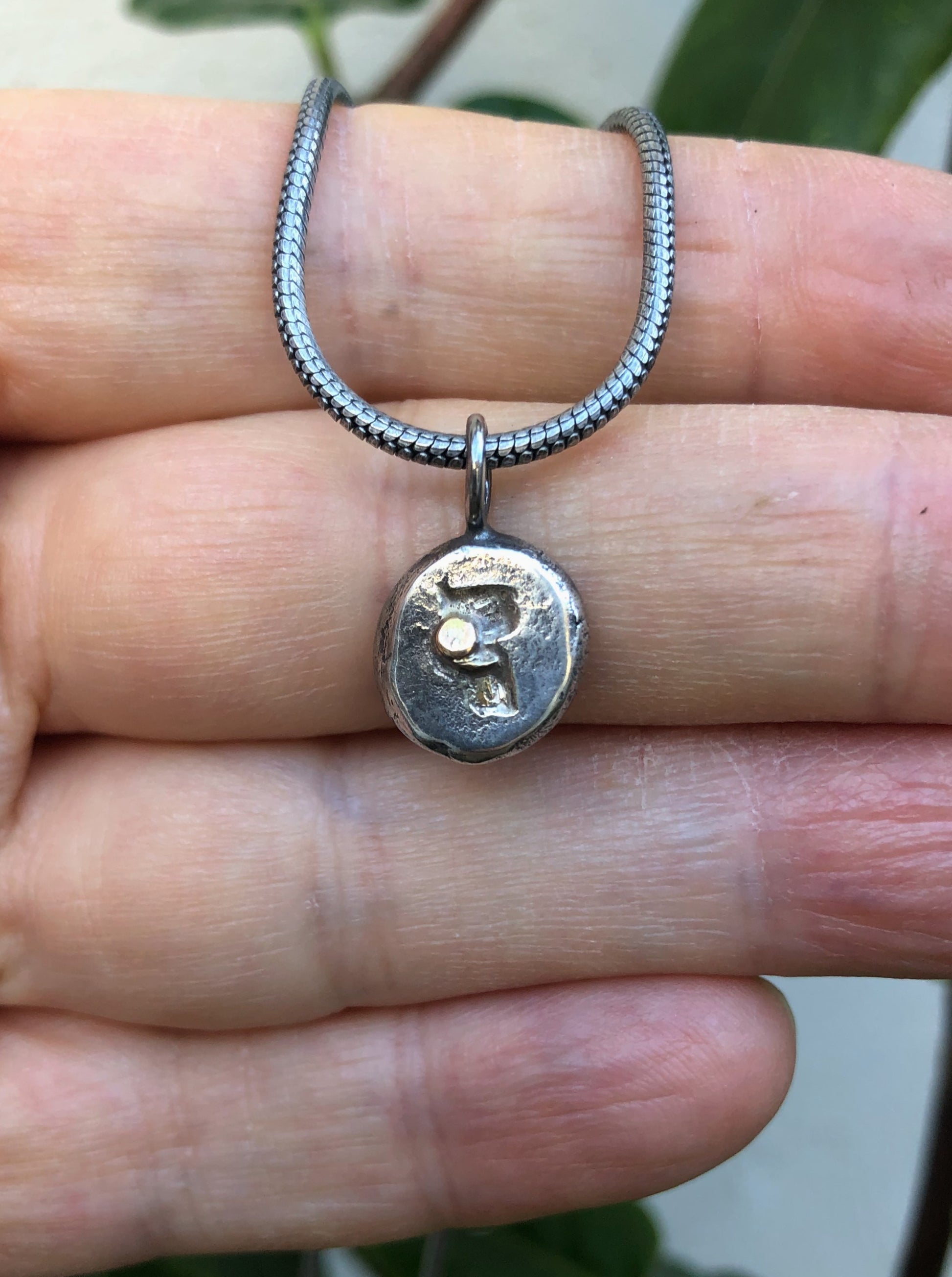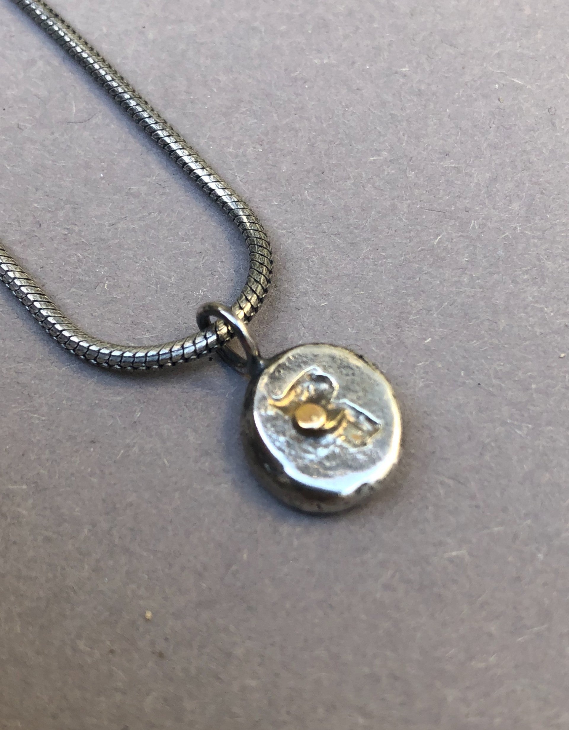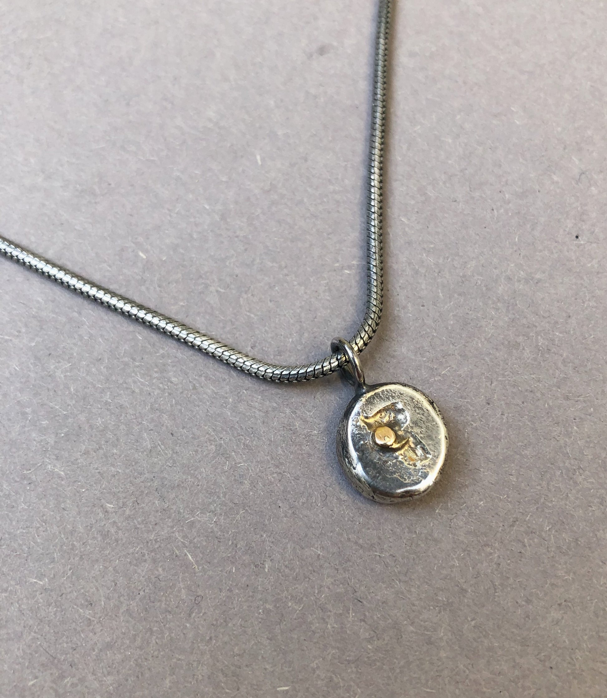 Verleihen Sie Ihrem Look mit dieser handgefertigten silbernen Herren-Anhängerhalskette eine stilvolle und einzigartige Note. Der Anhänger aus recyceltem Silber ist zu einem robusten Nugget geschlagen und dezent mit 14 Karat Gold veredelt. Dies verleiht diesem Schmuckstück ein einzigartiges Relief und eine eindrucksvolle Kombination aus rauer Silberstruktur mit raffinierten Goldakzenten – ein echter Hingucker mit „einem Hauch von Gold“.