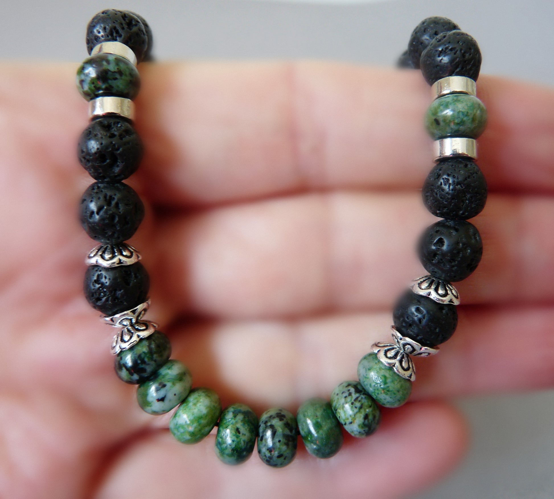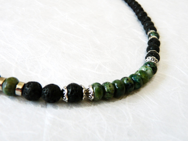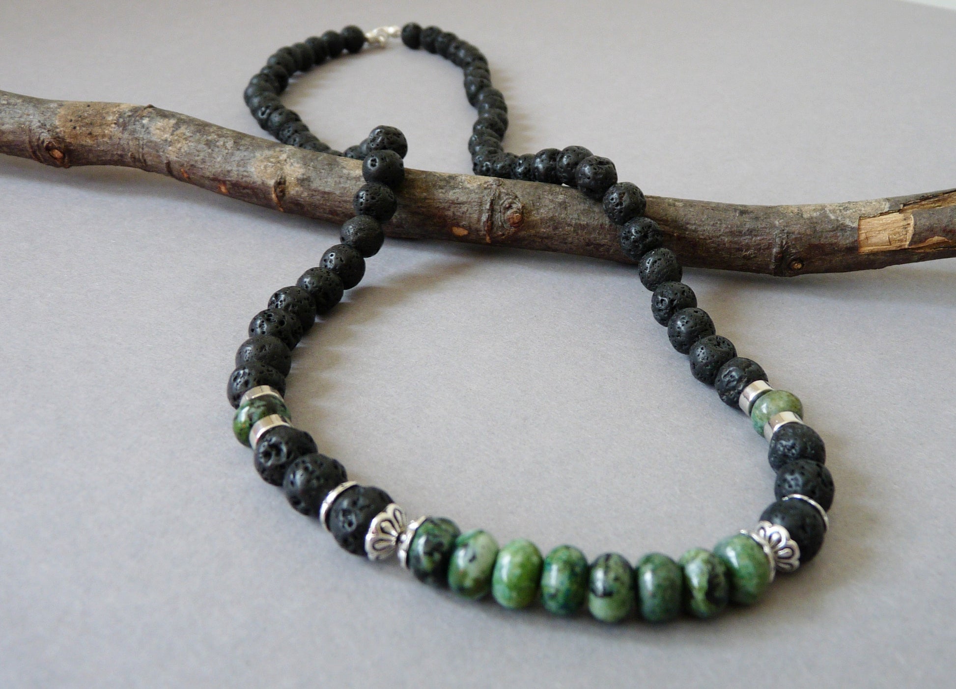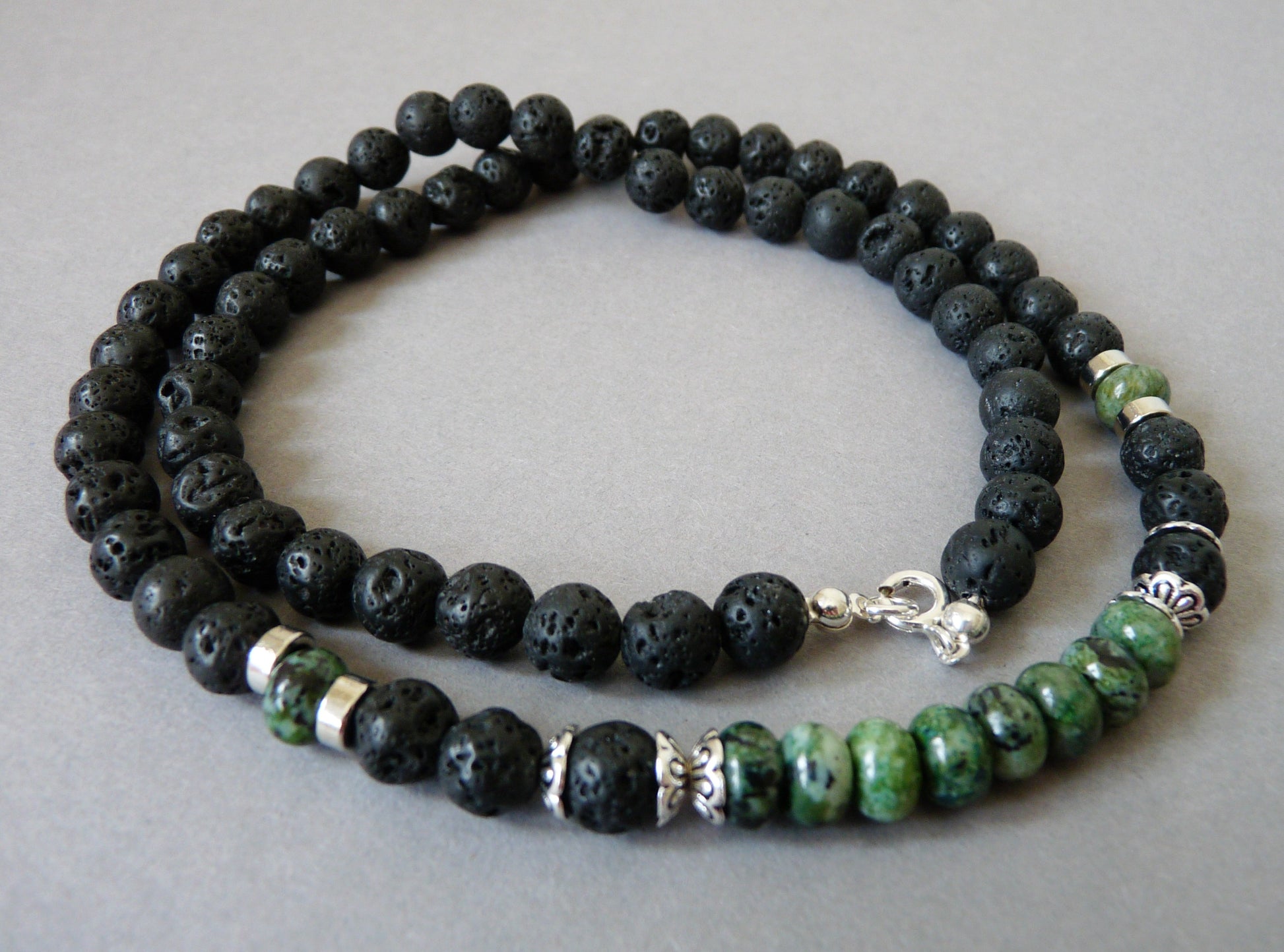 Kurze Herren-Perlenkette mit Natursteinen – Chrysokoll- und Lavaperlen