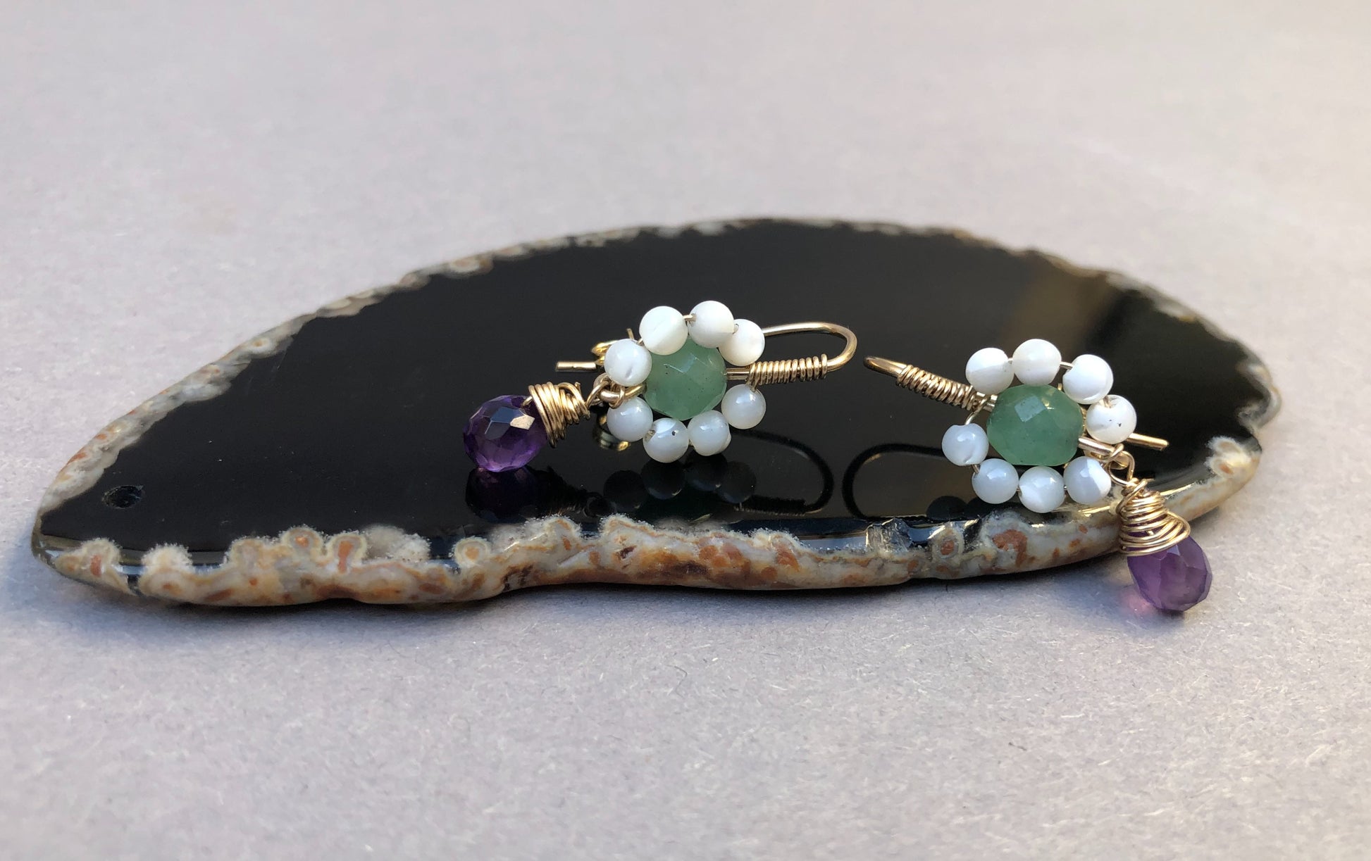 Goldfilled Ohrringe mit Amethyst und Aventurin – handgefertigter Schmuck mit floralen Details