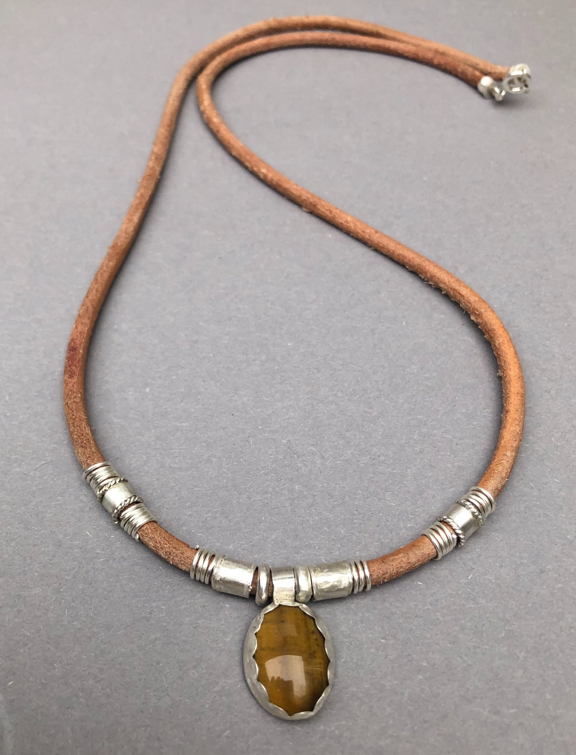 - Anhänger: Tigerauge mit gewelltem Silberrand