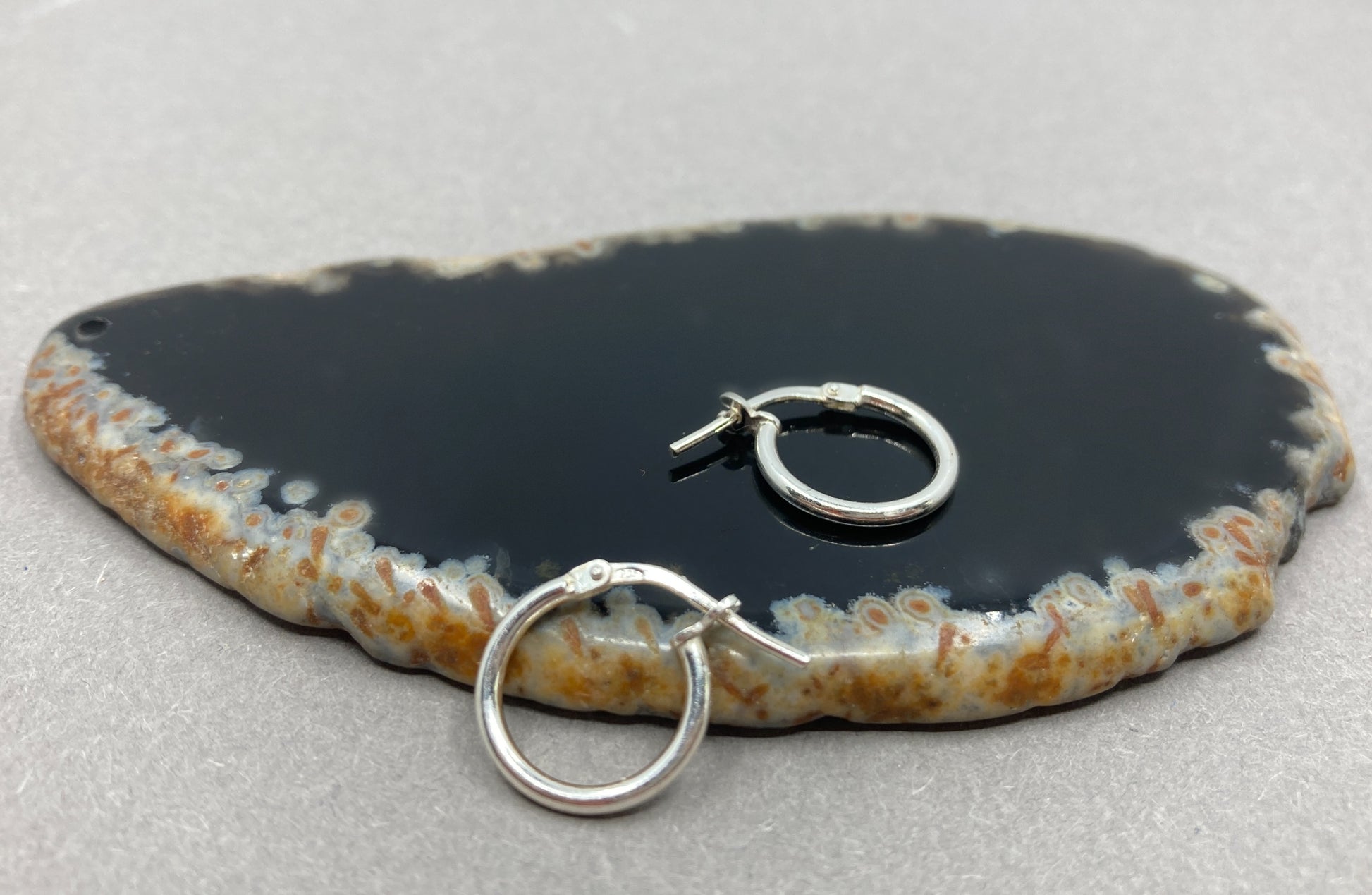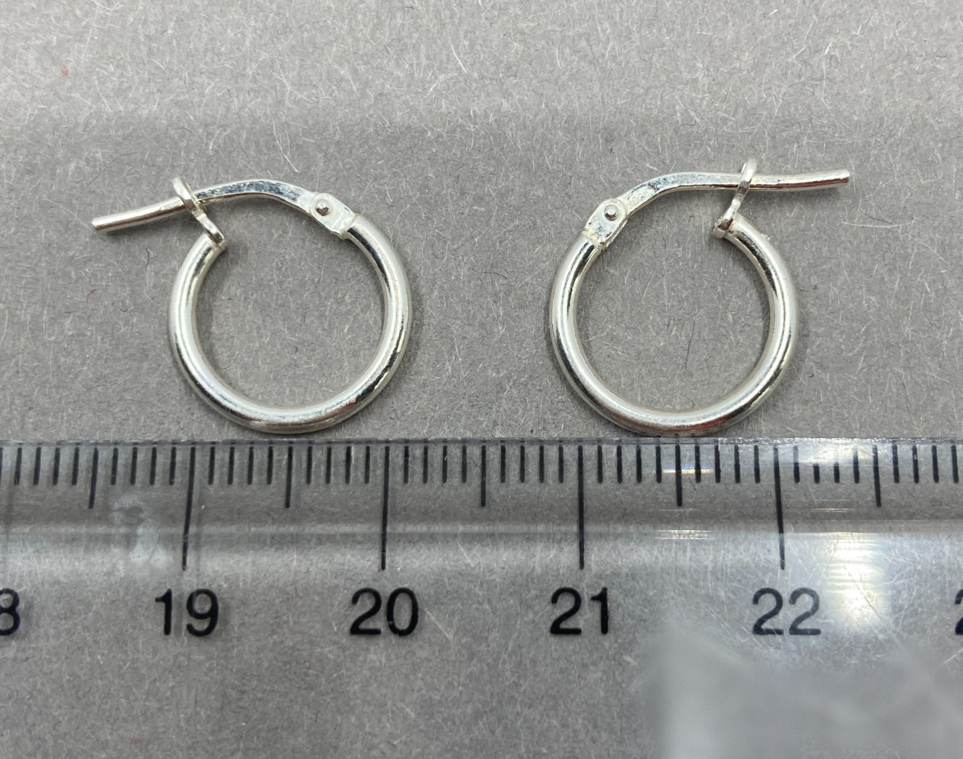 Ein wunderschönes und minimalistisches Paar Creolen aus Sterlingsilber für Damen mit Hebelverschluss für einfaches Einsetzen und Herausnehmen. Der Außendurchmesser dieses Sets beträgt 13 mm (Innendurchmesser 1 cm) und sorgt für einen dezenten und raffinierten Look.