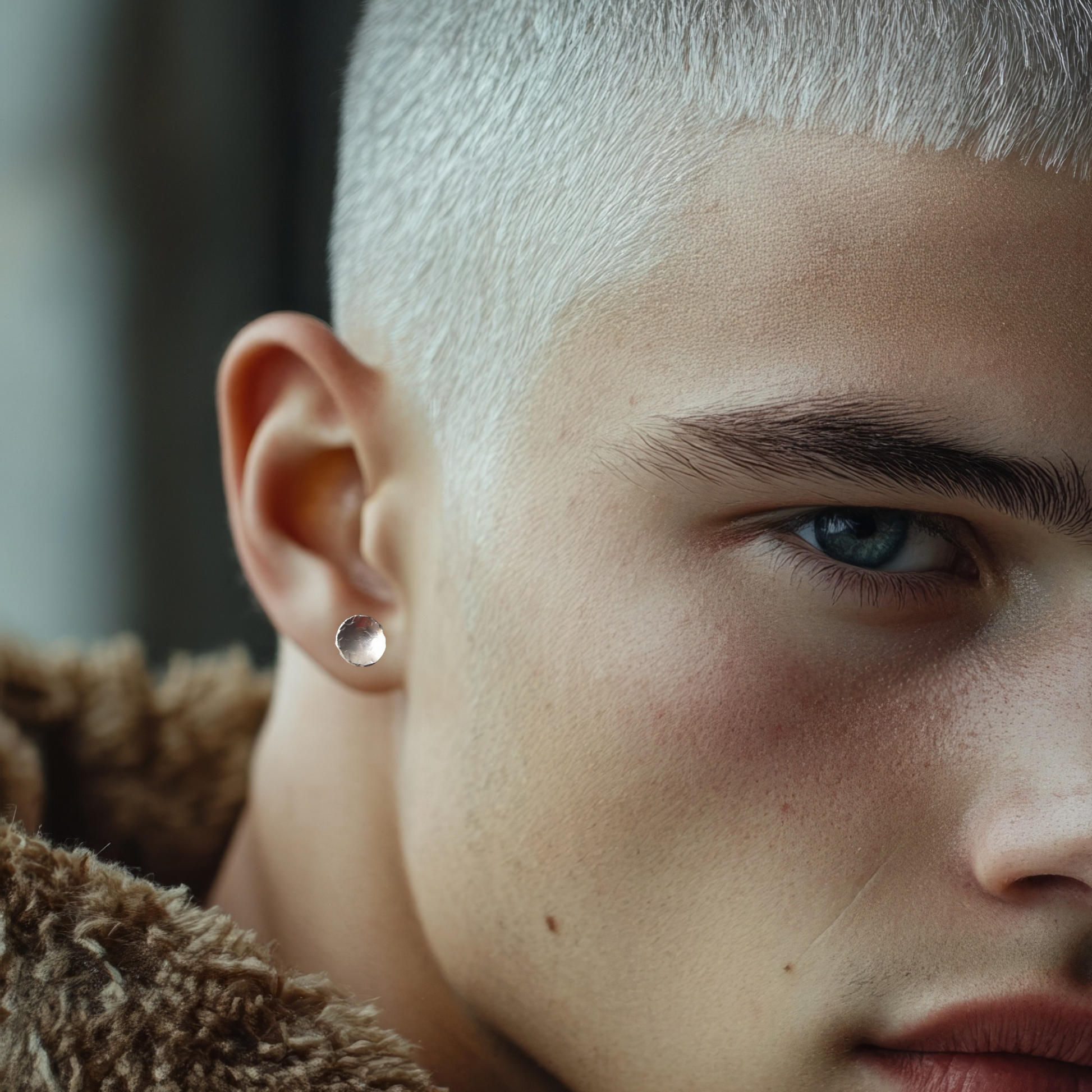 Diese Herren-Ohrstecker aus Sterlingsilber bestechen durch ihre robuste, gehämmerte Textur und ihr Hochglanz-Finish. Sie vereinen maskulinen Charme mit raffinierter Handwerkskunst – perfekt für den Alltag oder als stilvolles Geschenk.