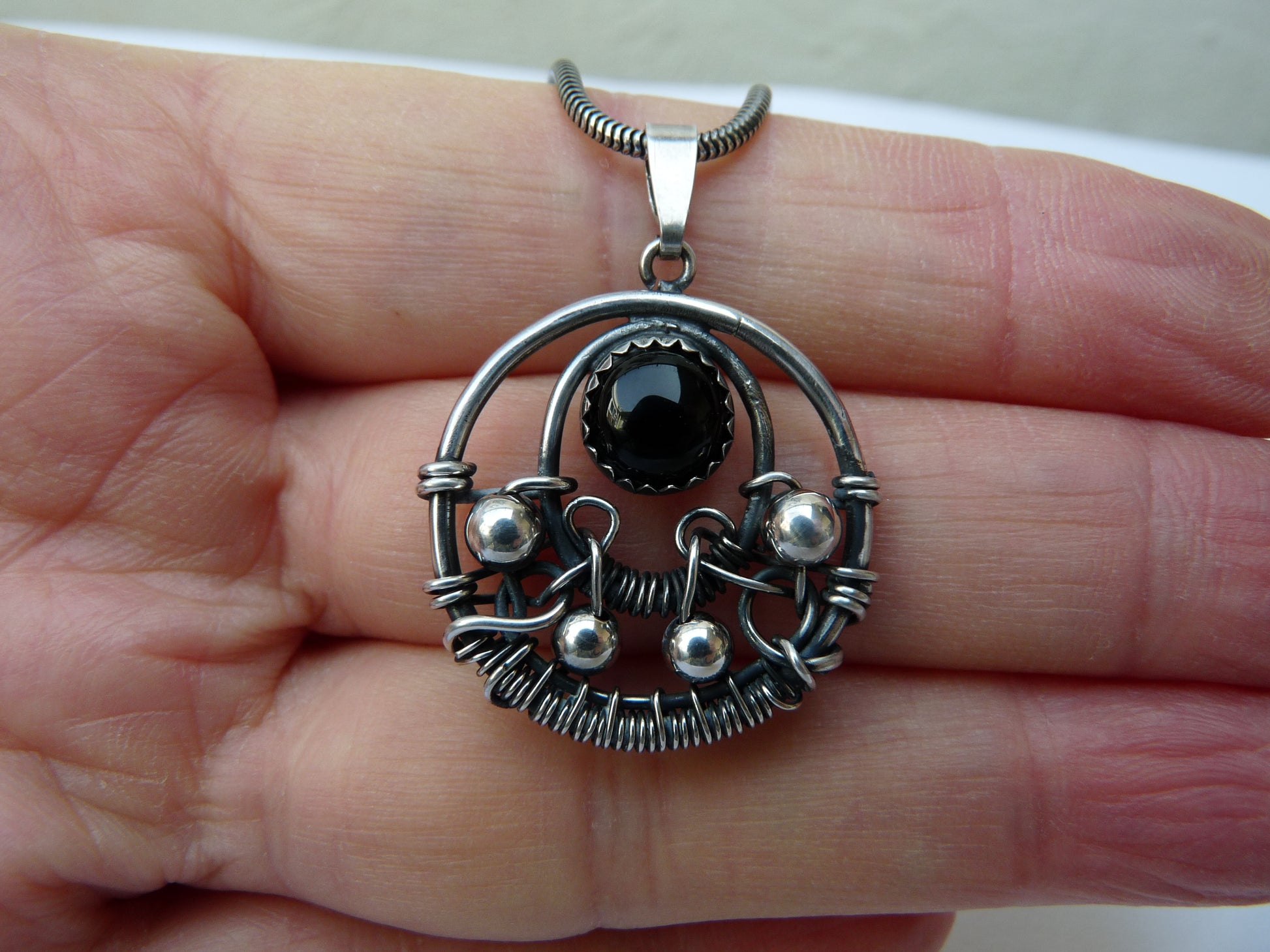 Suchen Sie nach einer stilvollen und eleganten Ergänzung Ihrer Schmuckkollektion? Unsere Onyx-Herrenhalskette aus Sterlingsilber mit handgefertigtem Anhänger ist die perfekte Wahl für Männer. Diese wunderschöne Herrenhalskette besteht aus einem 8 mm großen Onyx-Stein, der mit der komplizierten „Wire-Wrap“-Technik verziert wurde. Silberdraht wird auf kunstvolle Weise um den Onyx-Stein gewickelt, wodurch ein einzigartiges und einzigartiges Schmuckstück entsteht. Kein Schmuckstück gleicht dem anderen, was Ihrer robusten Herrenkette einen exklusiven Charme verleiht.