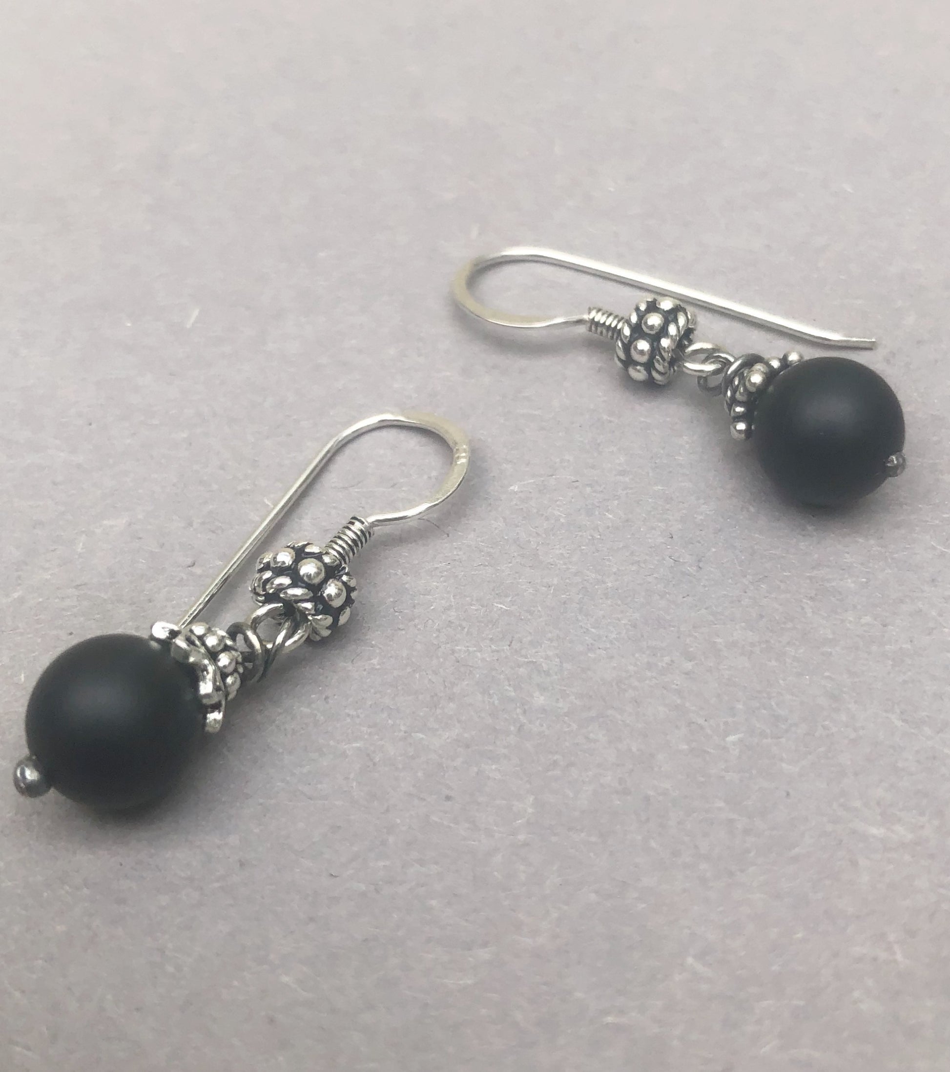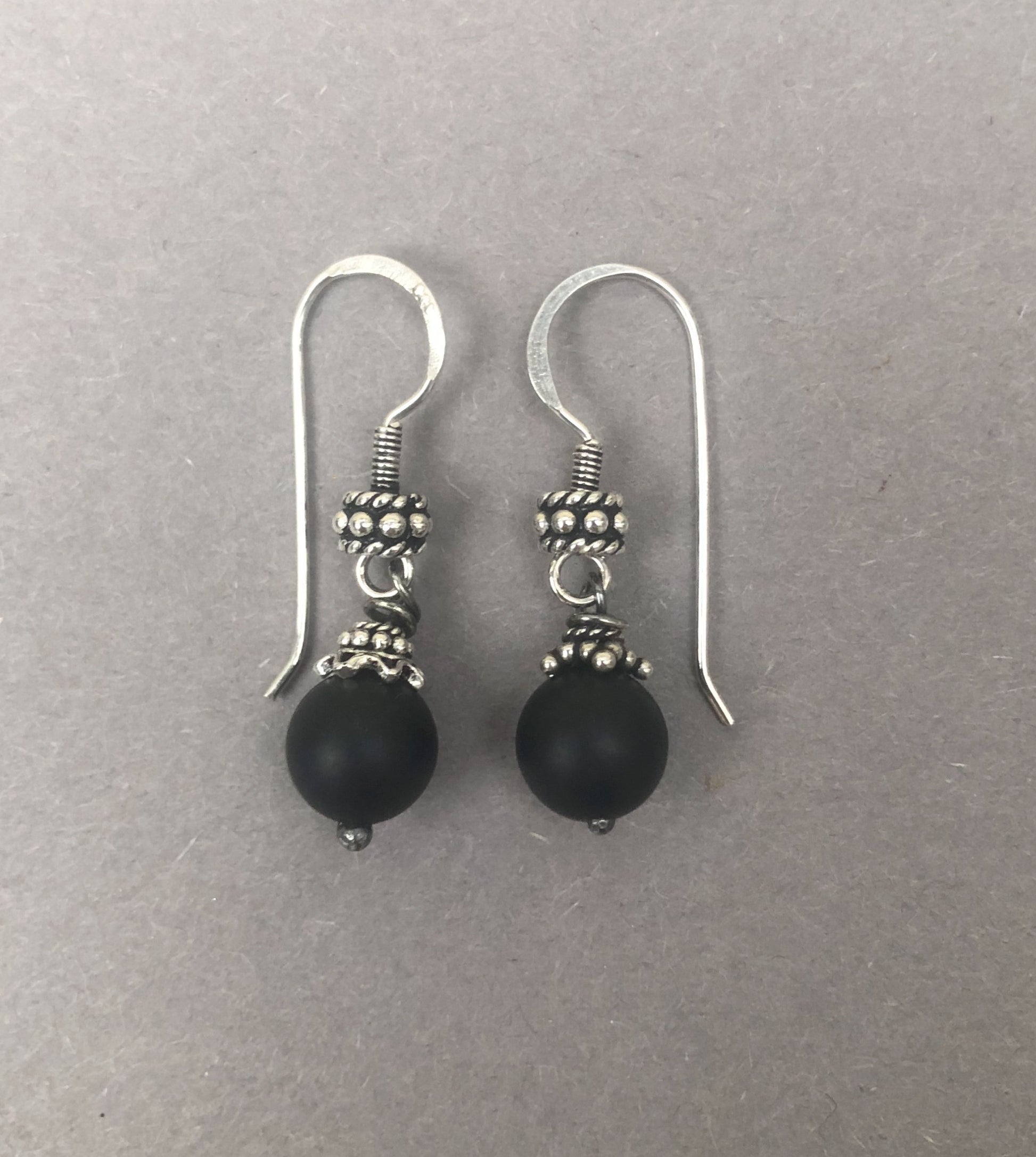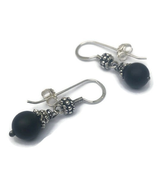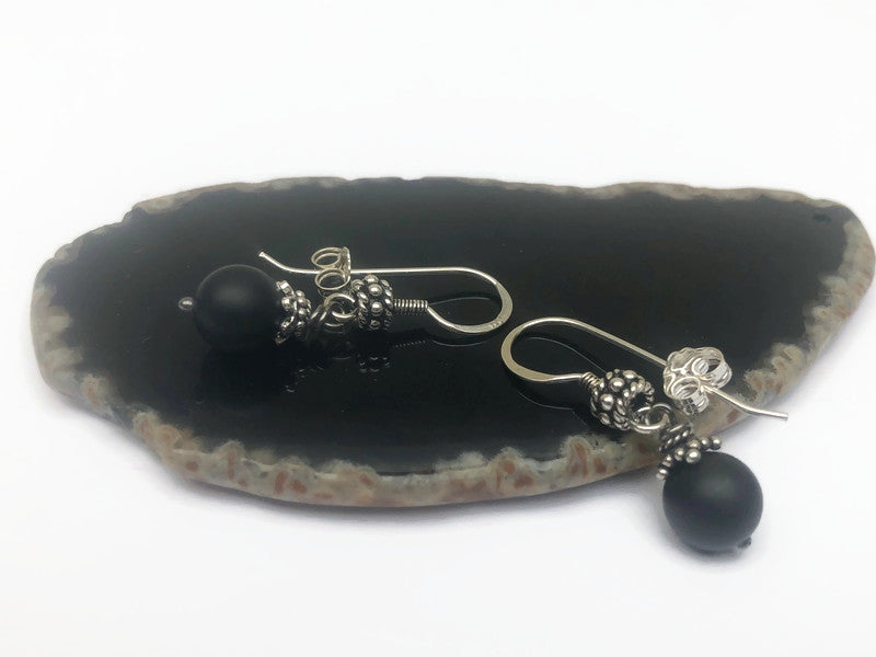 Entdecken Sie diese einzigartigen Sterlingsilber-Ohrringe für Männer mit wunderschönen Bali-Silberakzenten und tiefschwarzen Onyxperlen. Dieses coole und trendige Design verleiht jedem Outfit sofort Flair, egal ob Sie einen lässigen Look oder einen schicken Look bevorzugen. Die elegante Kombination aus Schwarz und Silber macht diese schwarzen Herrenohrringe zu einer vielseitigen Wahl für jeden Anlass.