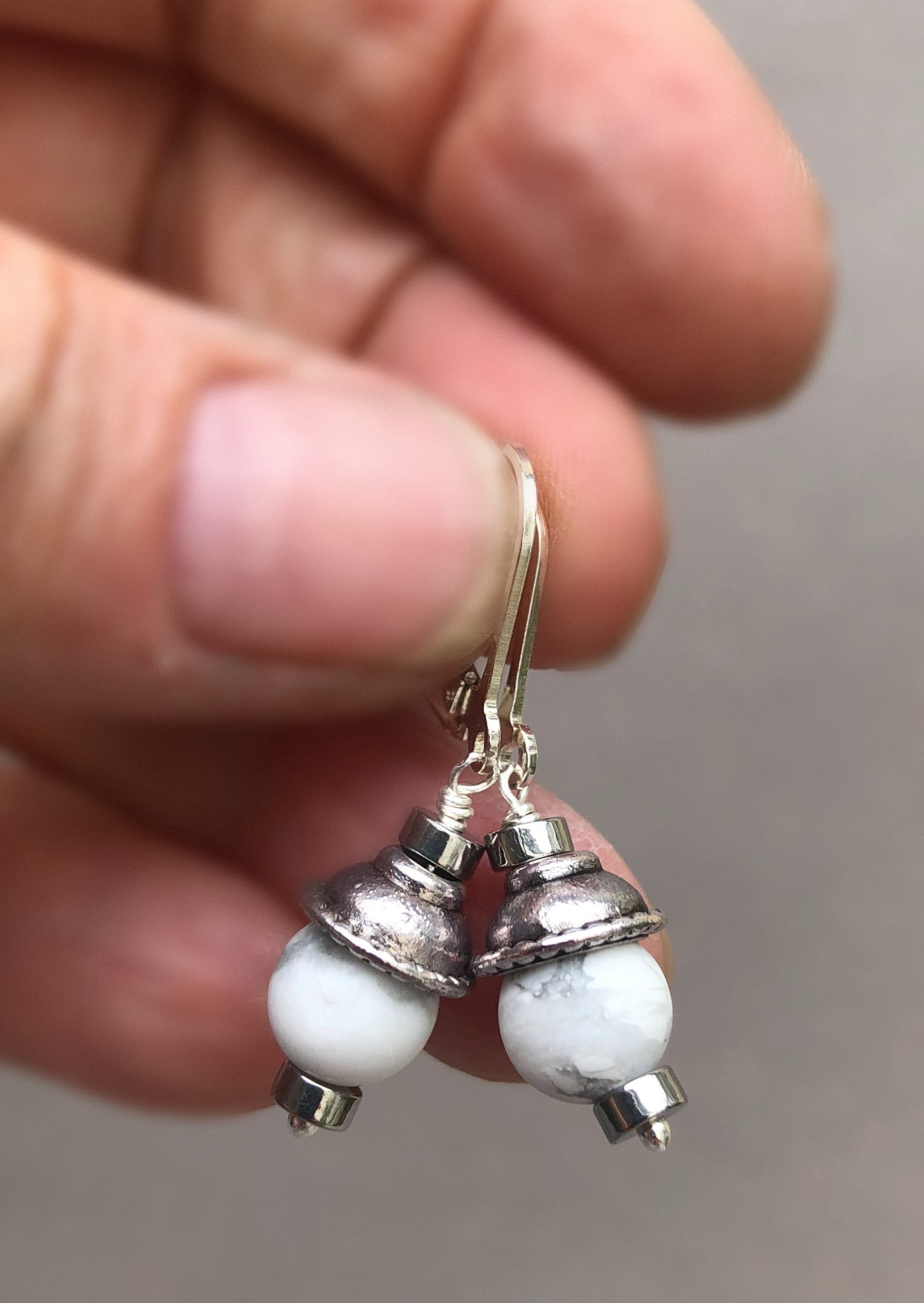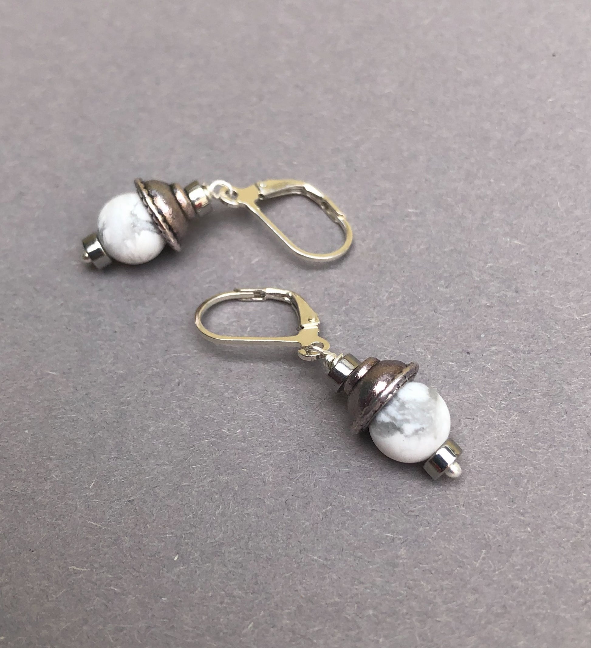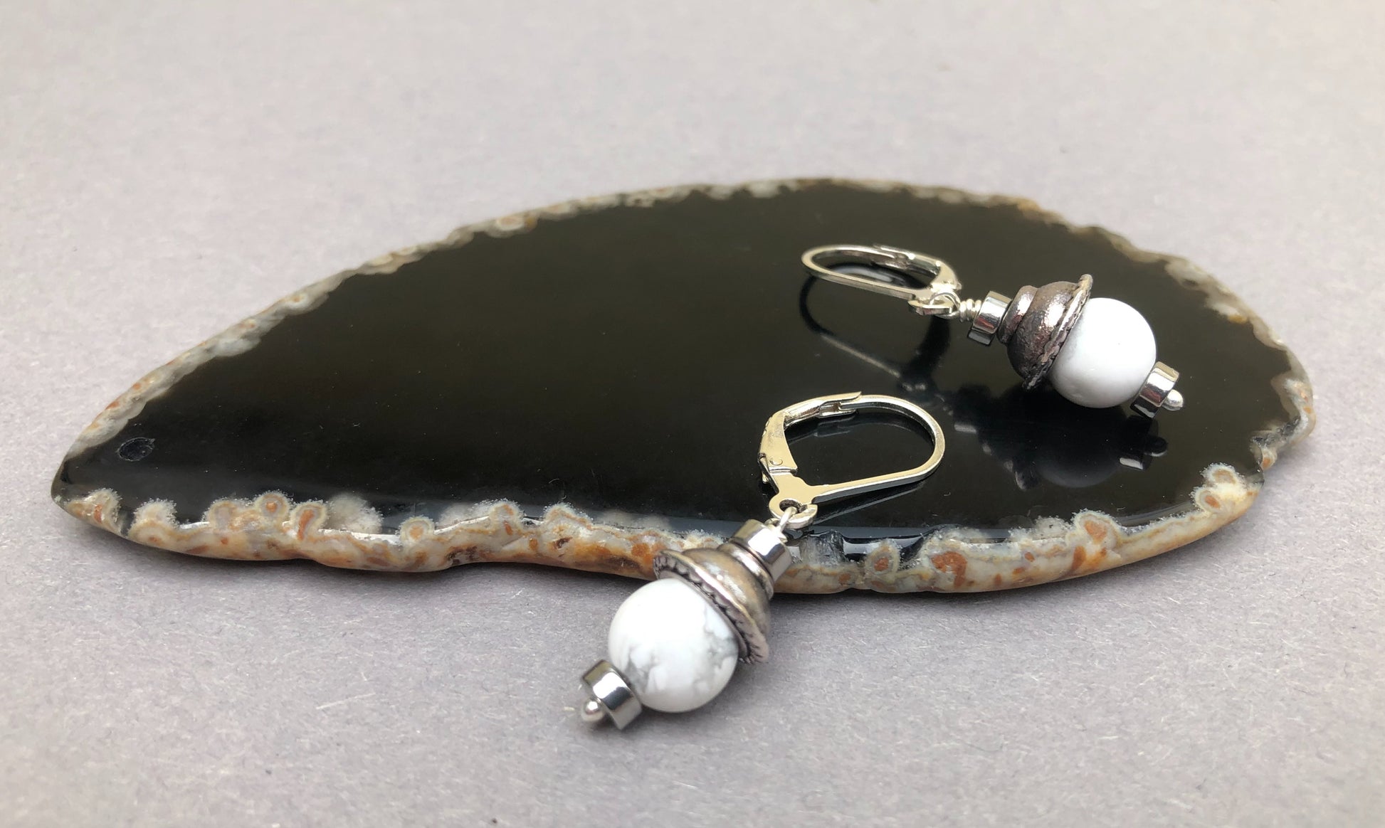 Diese robusten Ohrringe für Männer kombinieren Silberelemente mit Edelstahlkomponenten, was für ein robustes und langlebiges Erscheinungsbild sorgt. Die dezenten Howlith-Perlen verleihen diesem Herrenschmuck eine einzigartige und stilvolle Note und heben sich von den anderen ab.