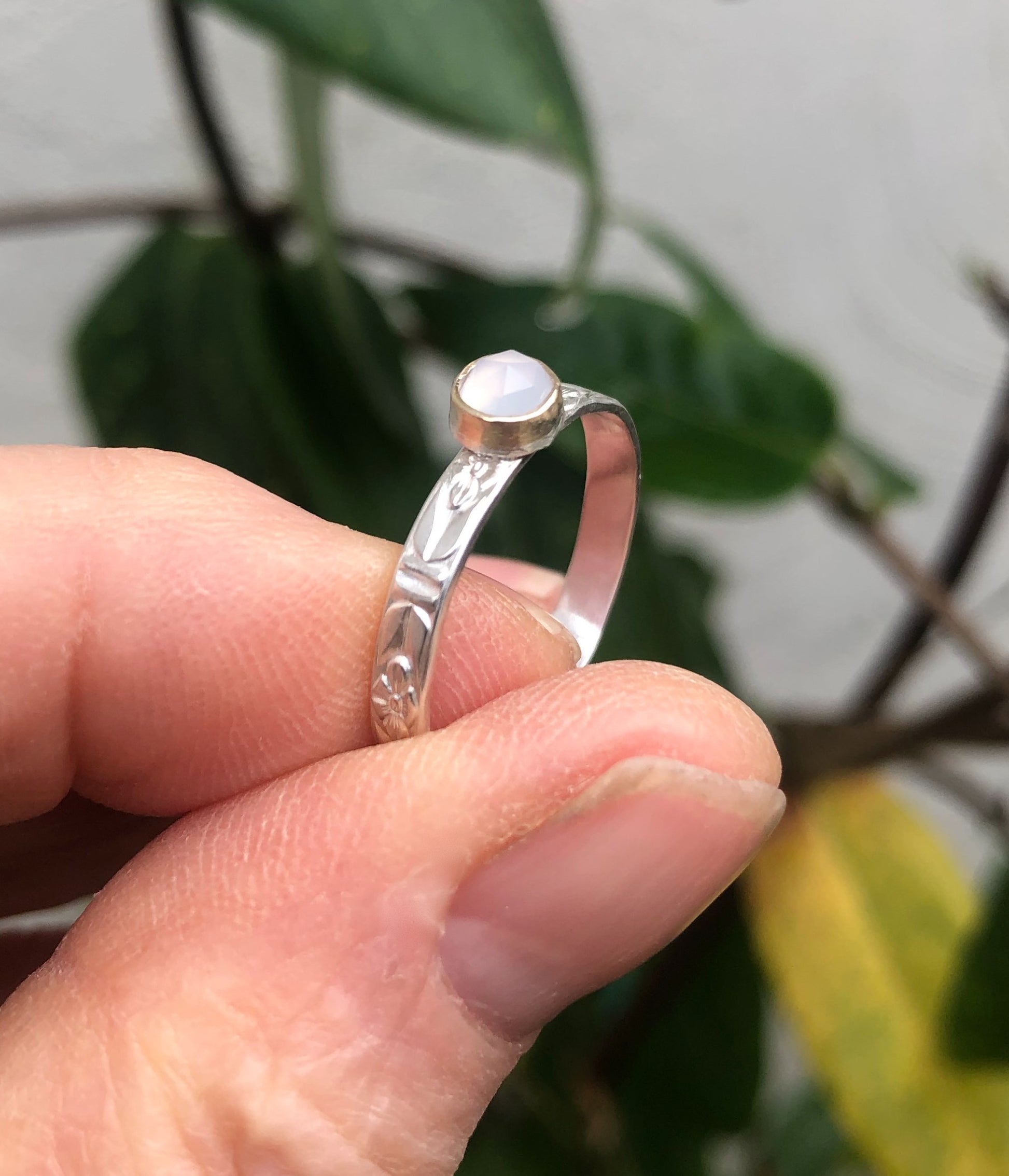 Freundschaftsring mit Chalcedon – Handgefertigter Versprechens- oder Verlobungsring