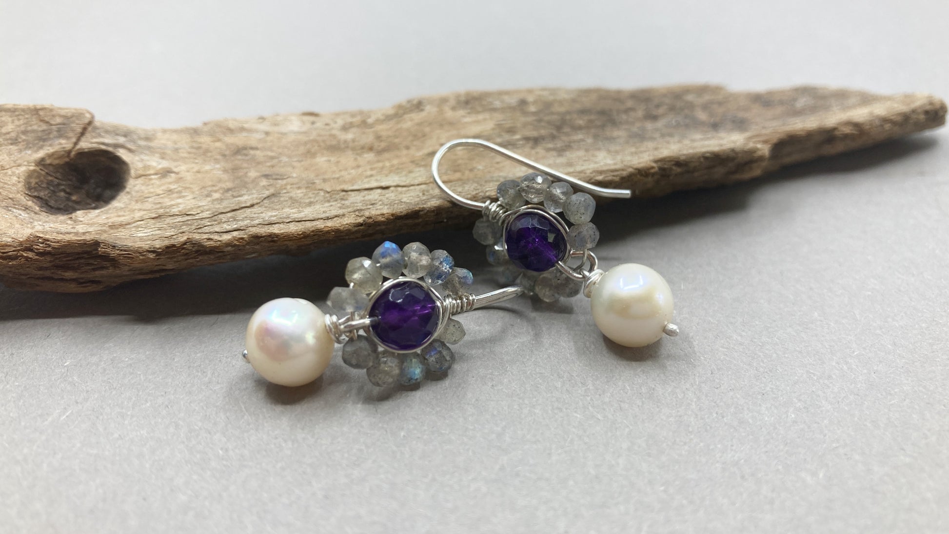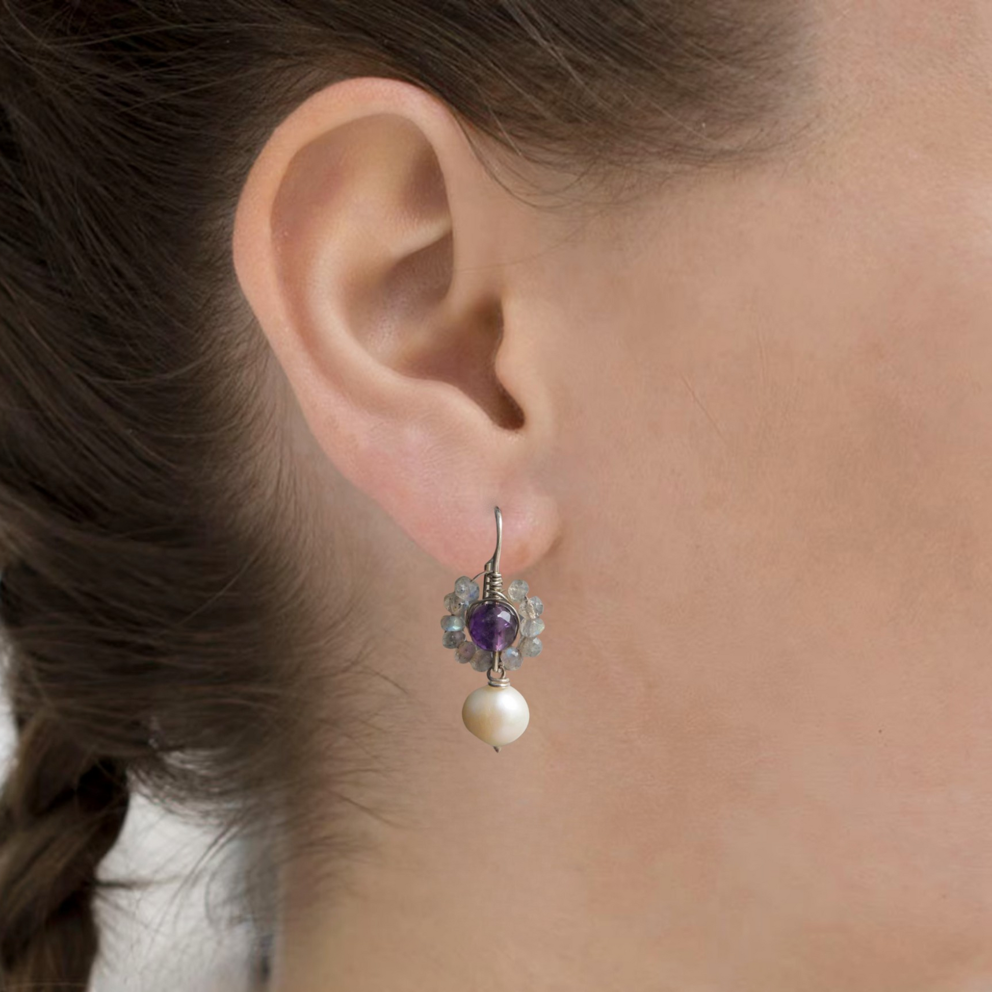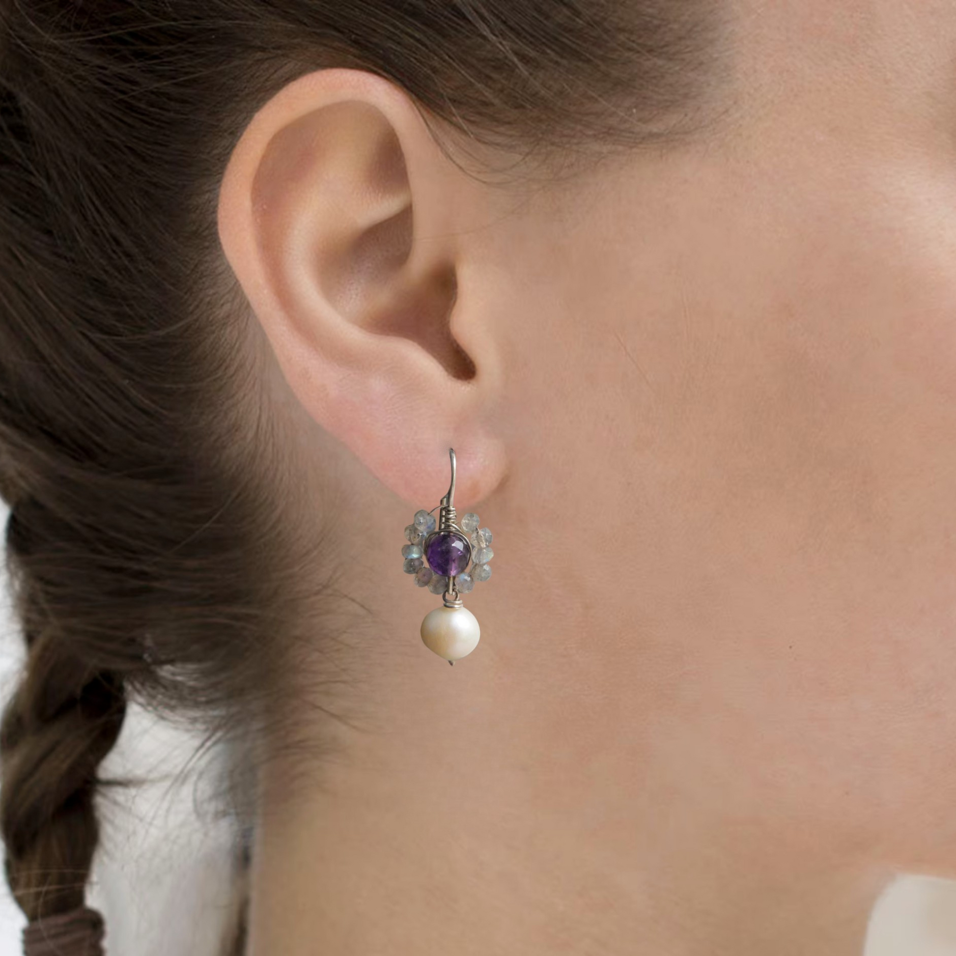 Silberohrringe mit Labradorit-Amethyst und Süßwasserperle