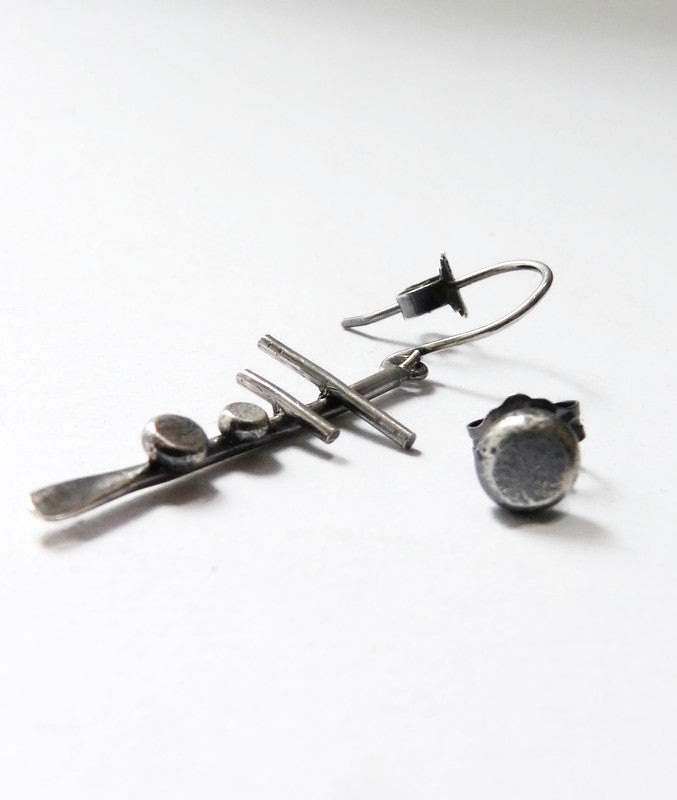 Jeder Ohrring ist handgefertigt aus recyceltem Sterlingsilber mit dunkel oxidiertem Finish. Dies betont die raue Textur und verleiht dem Design Charakter. Leicht und angenehm zu tragen, eignen sie sich ideal für den Alltag oder als auffälliger Akzent für Ihr Outfit.
