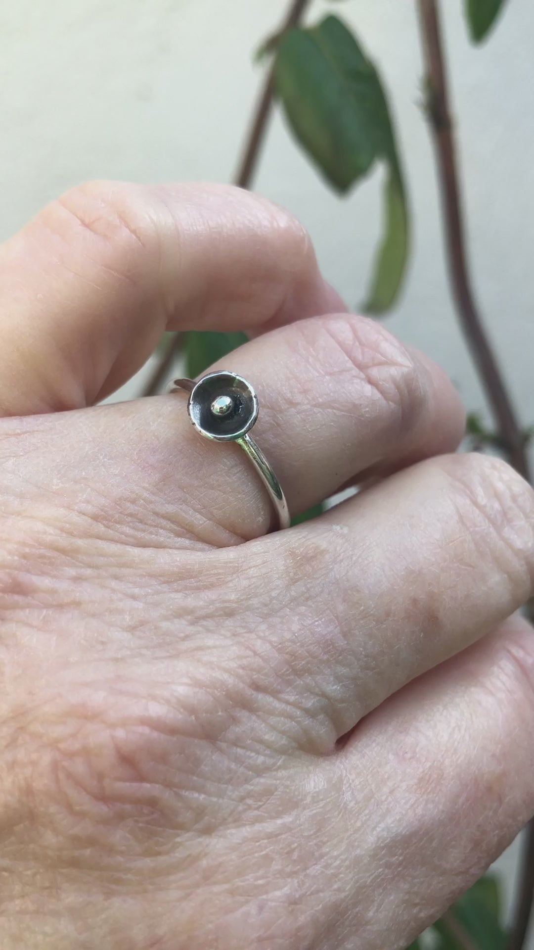 Silberner Stapelring mit Untertasse