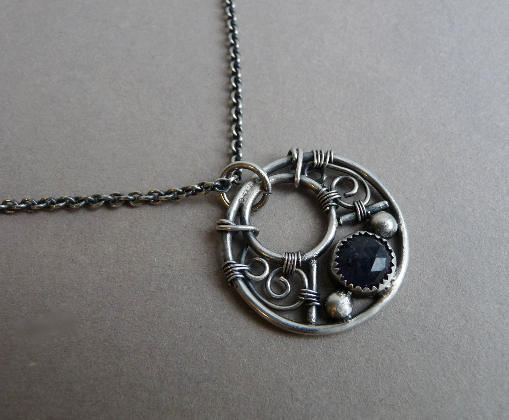 CUSTOM ORDER - Silver necklace for men with Iolite - Handmade men's necklace with natural stone