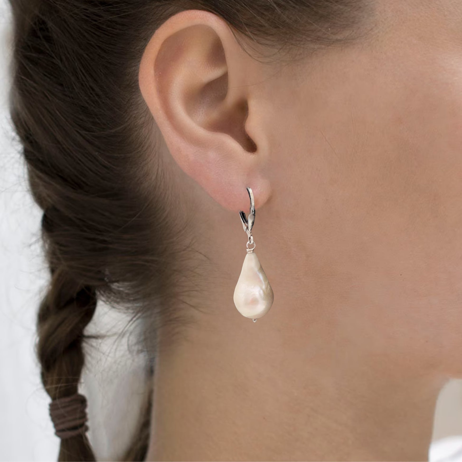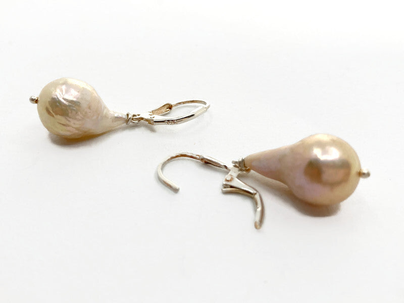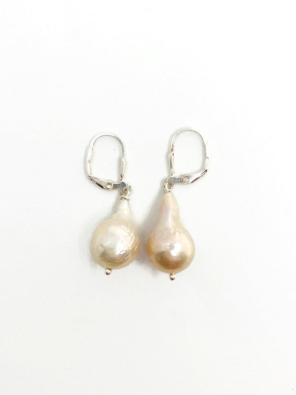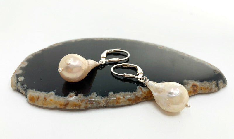 A pair of beautiful, large freshwater pearls that vary in shades from soft white to subtle pink. Thanks to their irregular structure and size, these pearls really stand out and will undoubtedly attract attention. Whether you are attending a chic occasion or just wearing an everyday outfit, pearls are suitable for any occasion. The most important thing is that they are comfortable to wear, and they certainly are. Thanks to the handy Sterling silver fold-over earrings, these earrings are easy to put in and you don't have to worry about losing them.