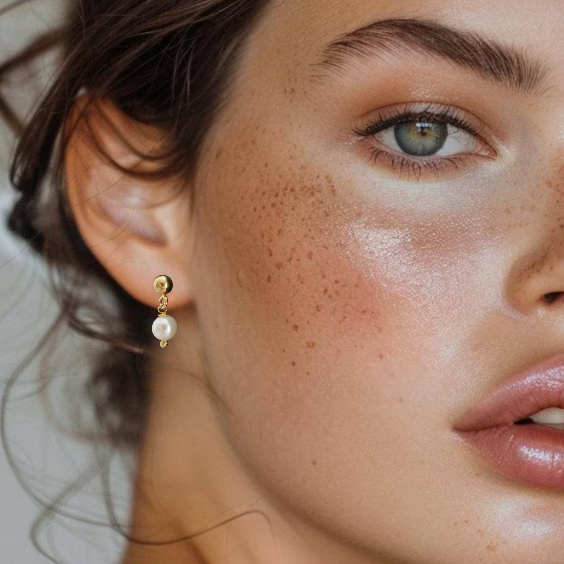 The 5 mm gold-plated studs provide a calm base, while the 6 mm freshwater pearl provides a soft, classic shine. Thanks to their compact size, these earrings can be effortlessly combined with multiple earrings for a layered and personal look.