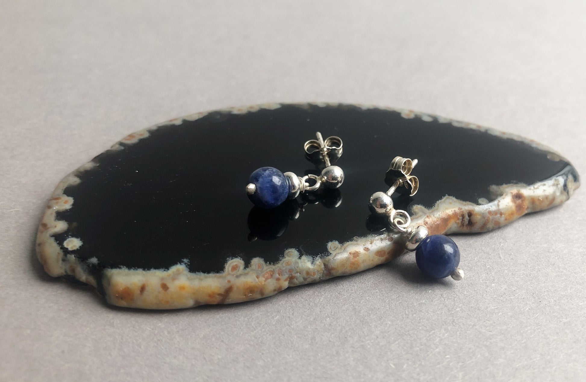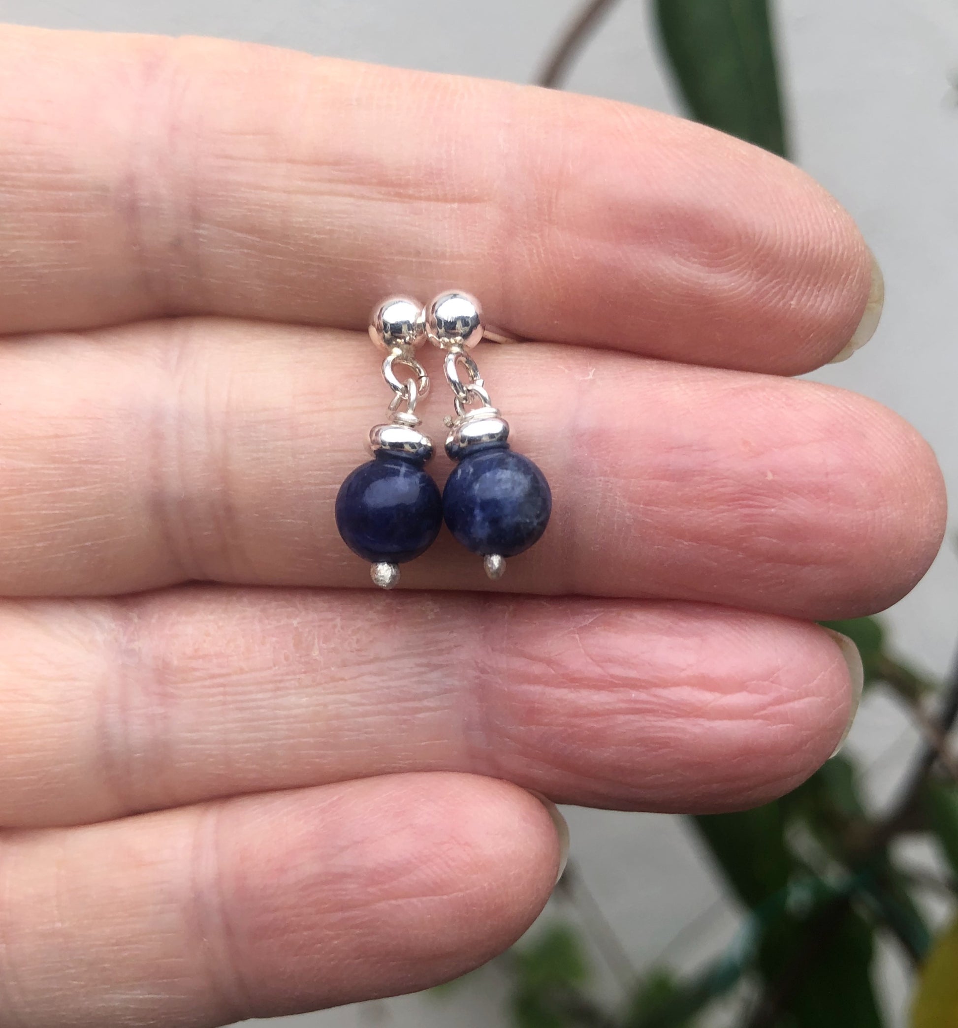 Discover these stylish stud earrings in silver – specially designed as earrings in Silver for men. This minimalist stud earrings are crafted from sterling silver and finished with a 6mm Sodalite bead. The deep blue tones of Sodalite give the earrings a powerful yet tranquil look: bold, refined, and suitable for everyday wear.