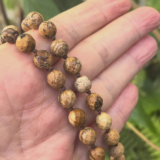 Natural stone necklace for men – spiritual men's necklace made of Landscape Jasper beads
