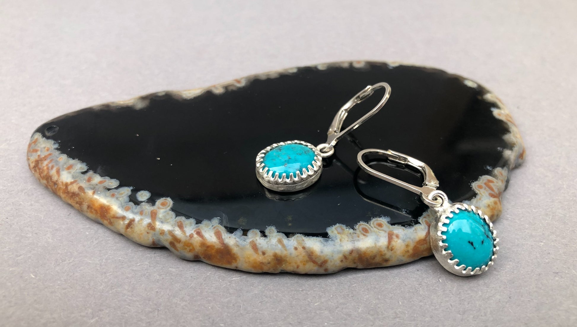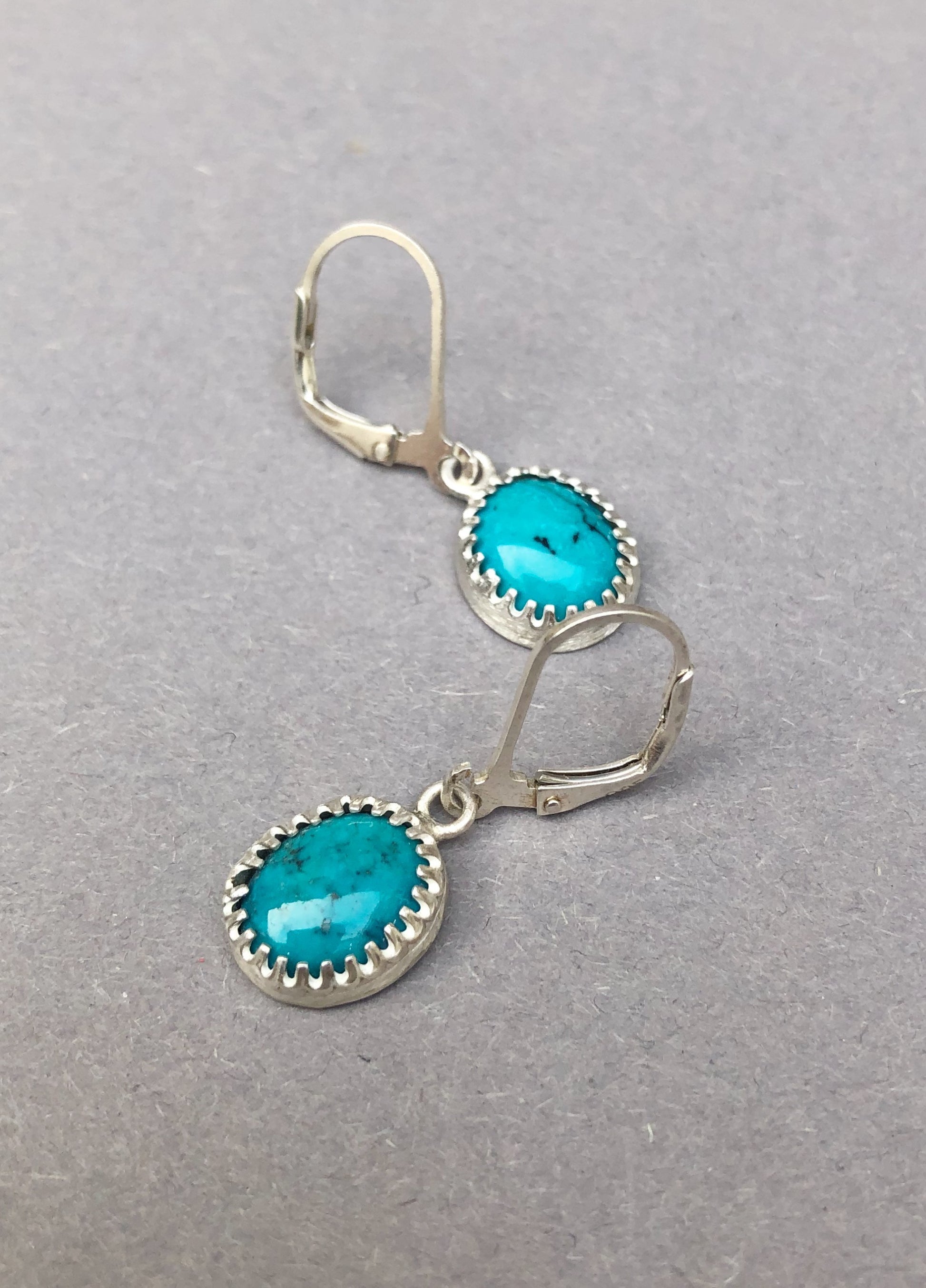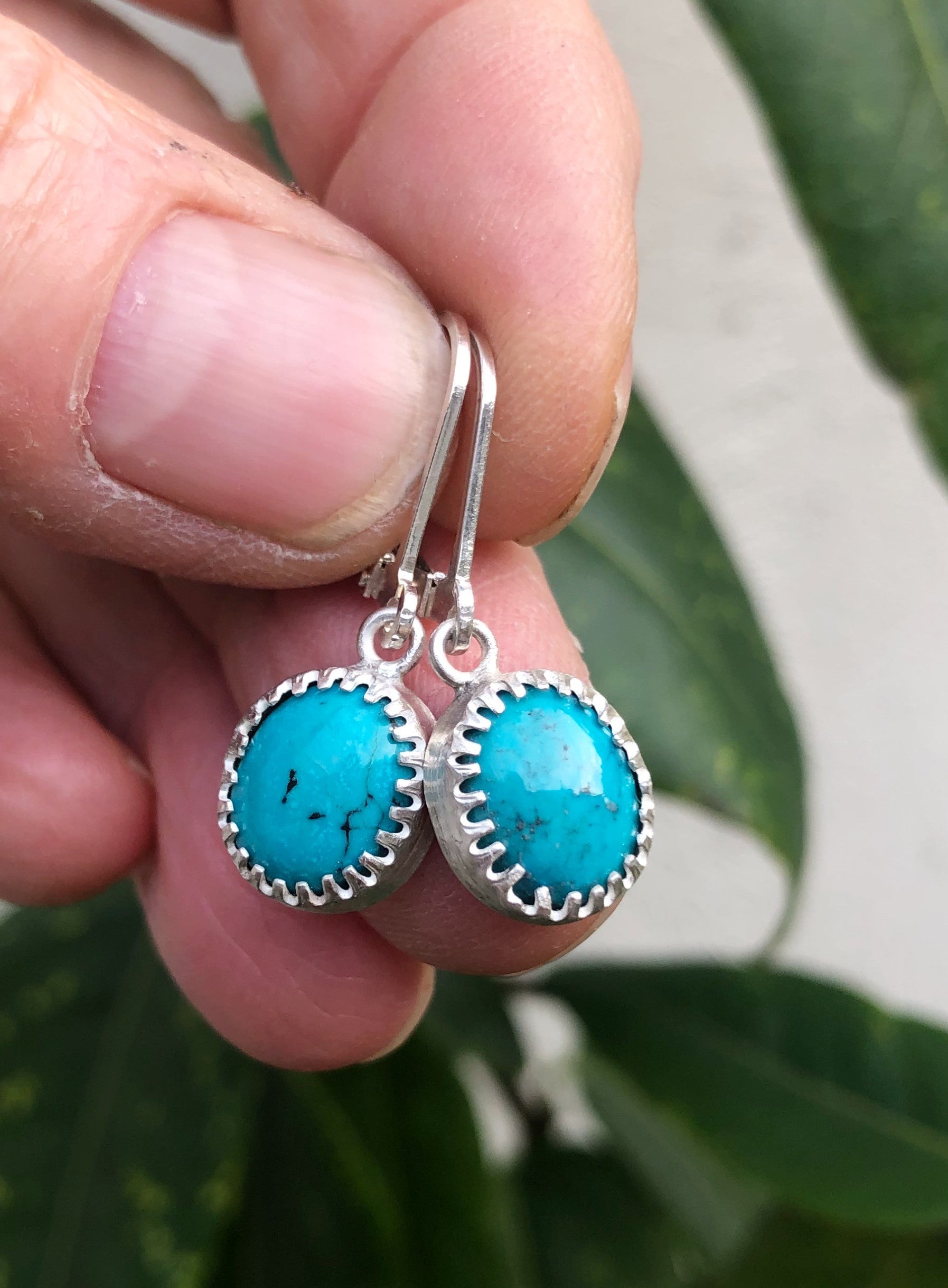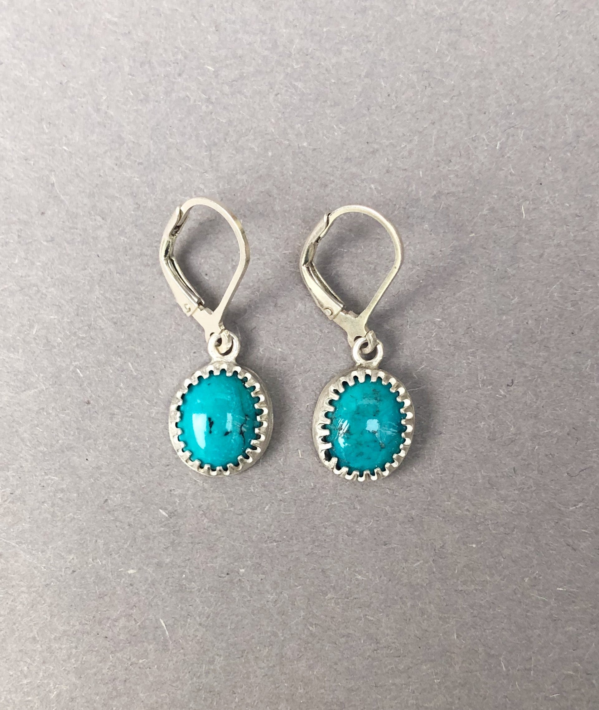 These handmade sterling silver earrings for men are finished with deep blue turquoise. The stone adds a subtle bohemian touch, and its natural color makes them perfect for everyday wear or special occasions.