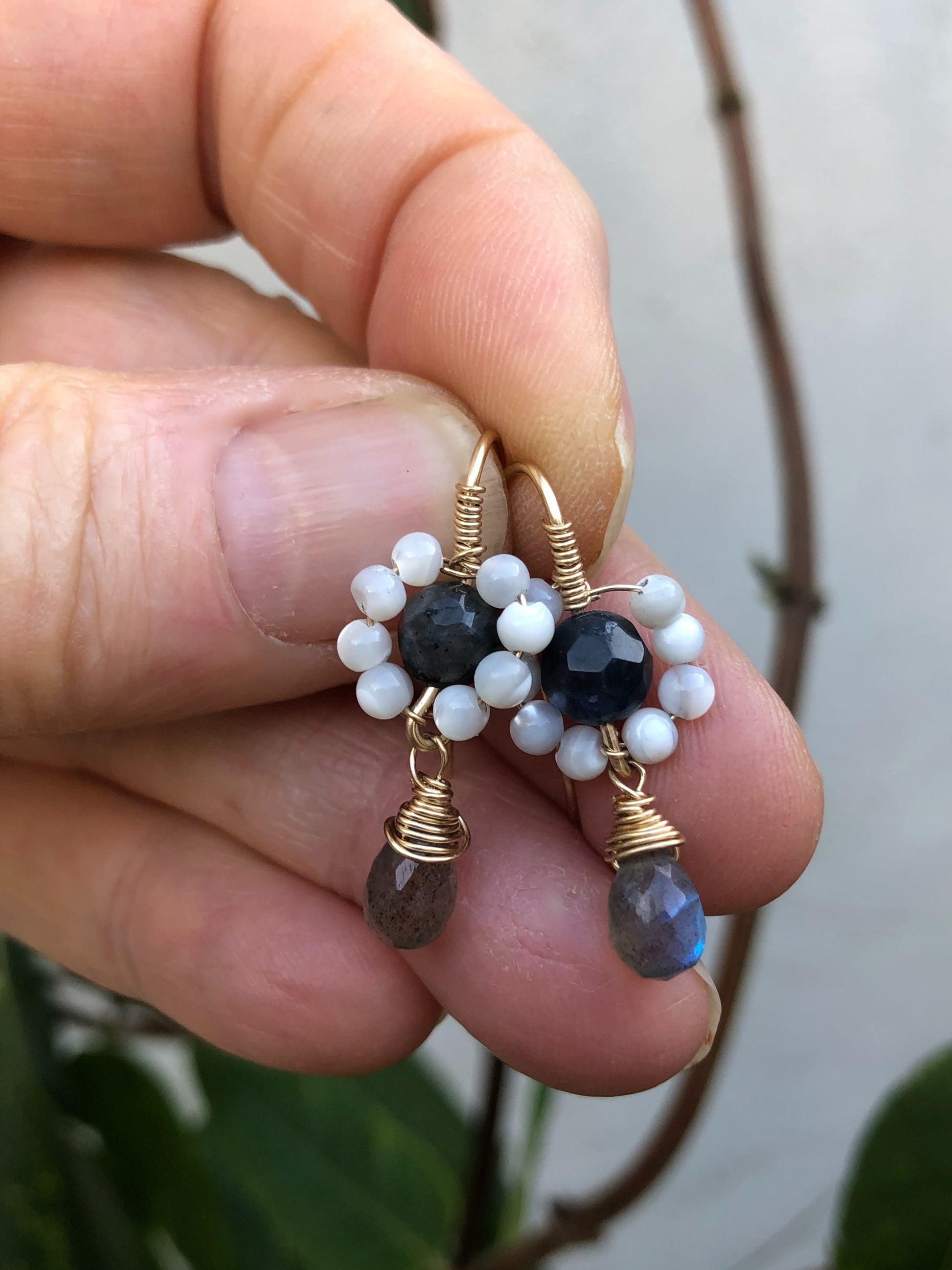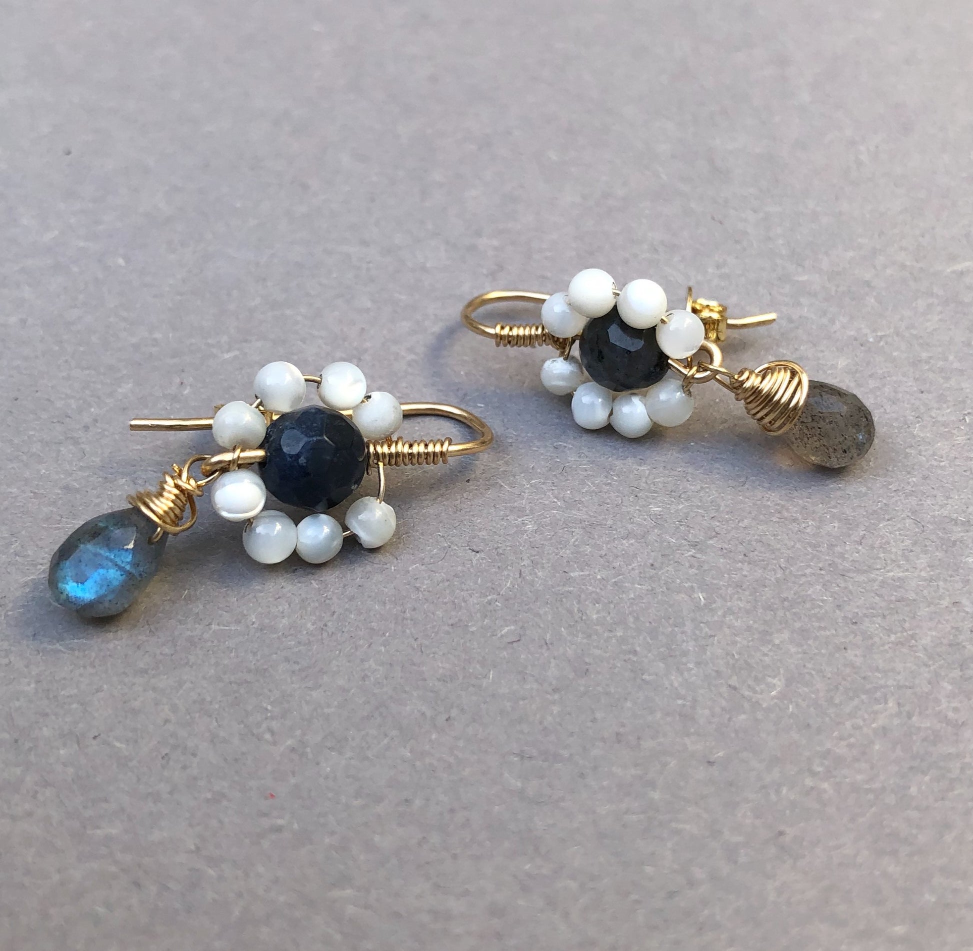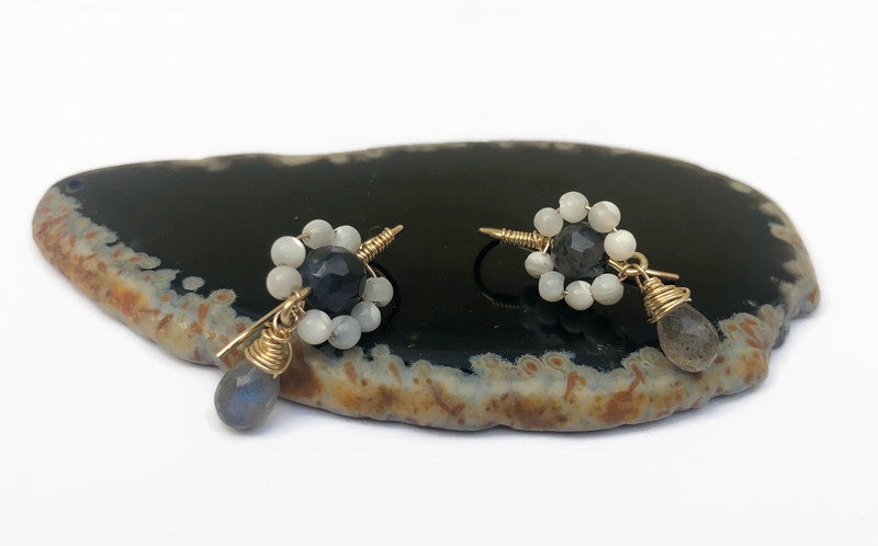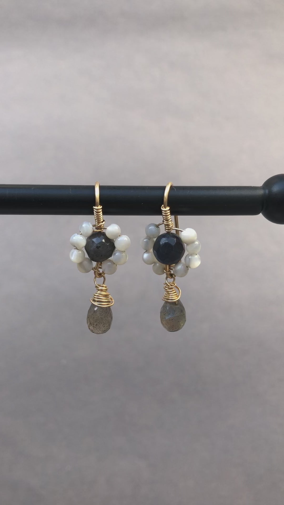 14k Goldfilled bloem oorbellen met Spectroliet en Labradoriet