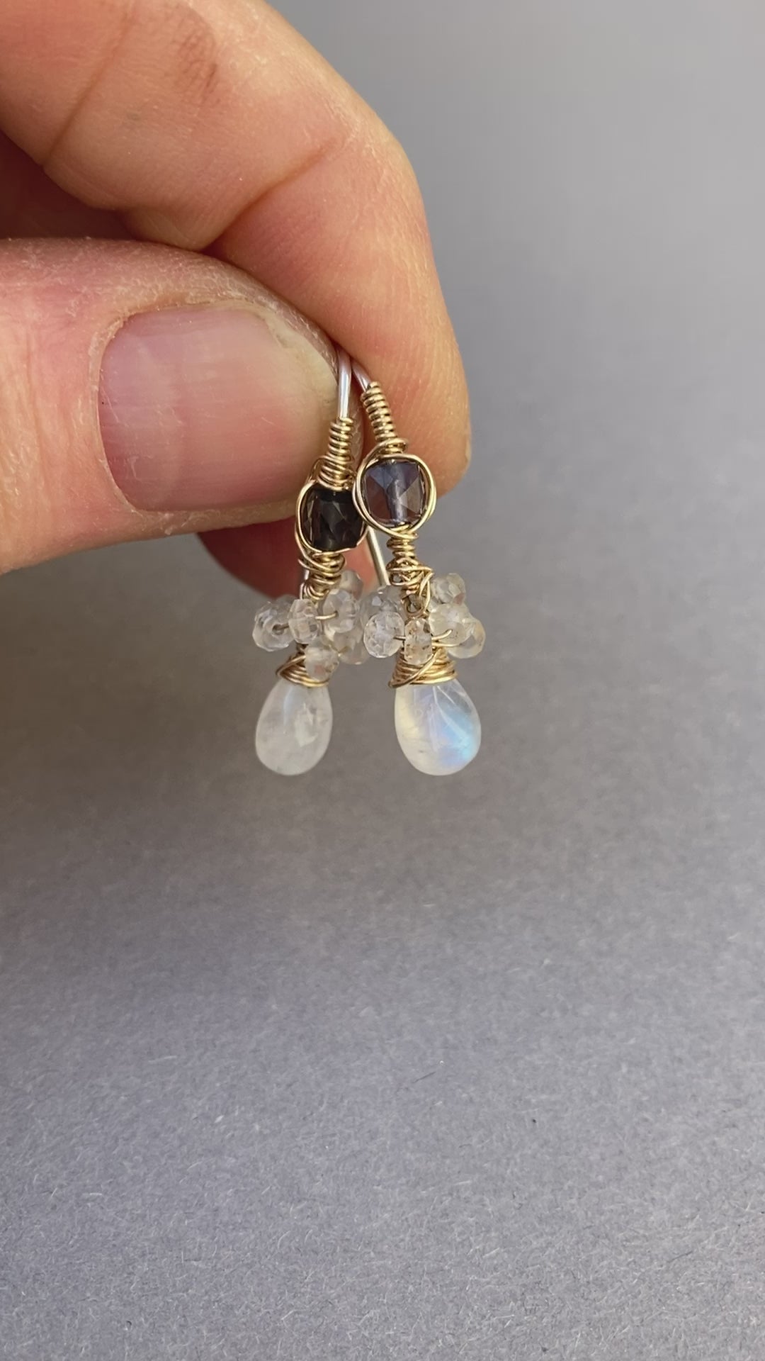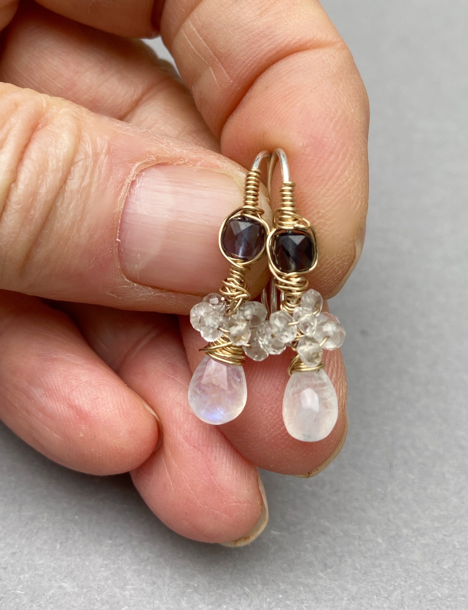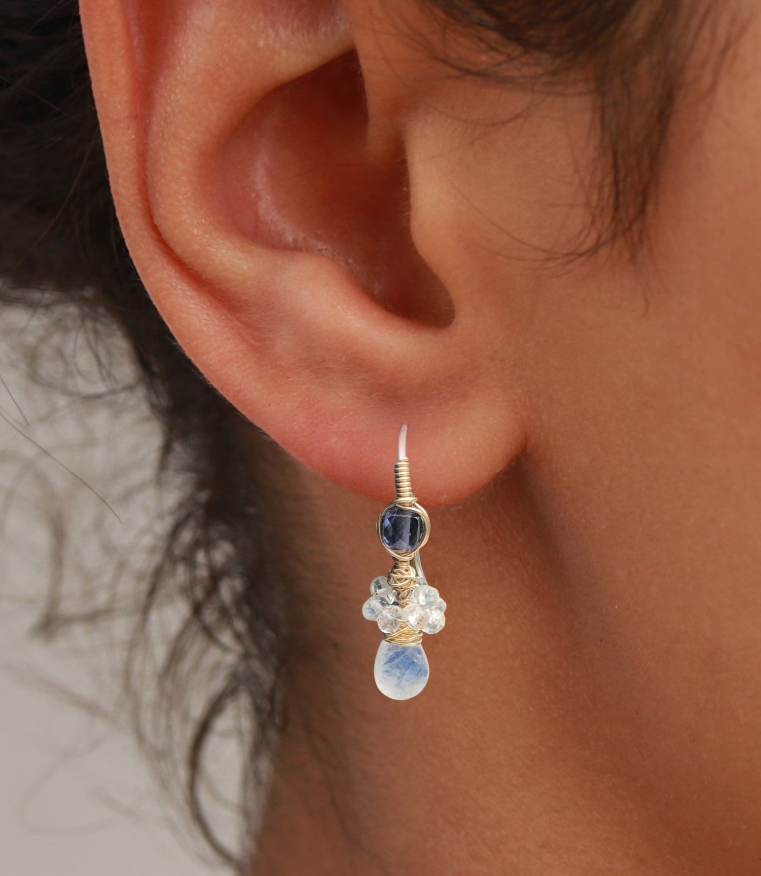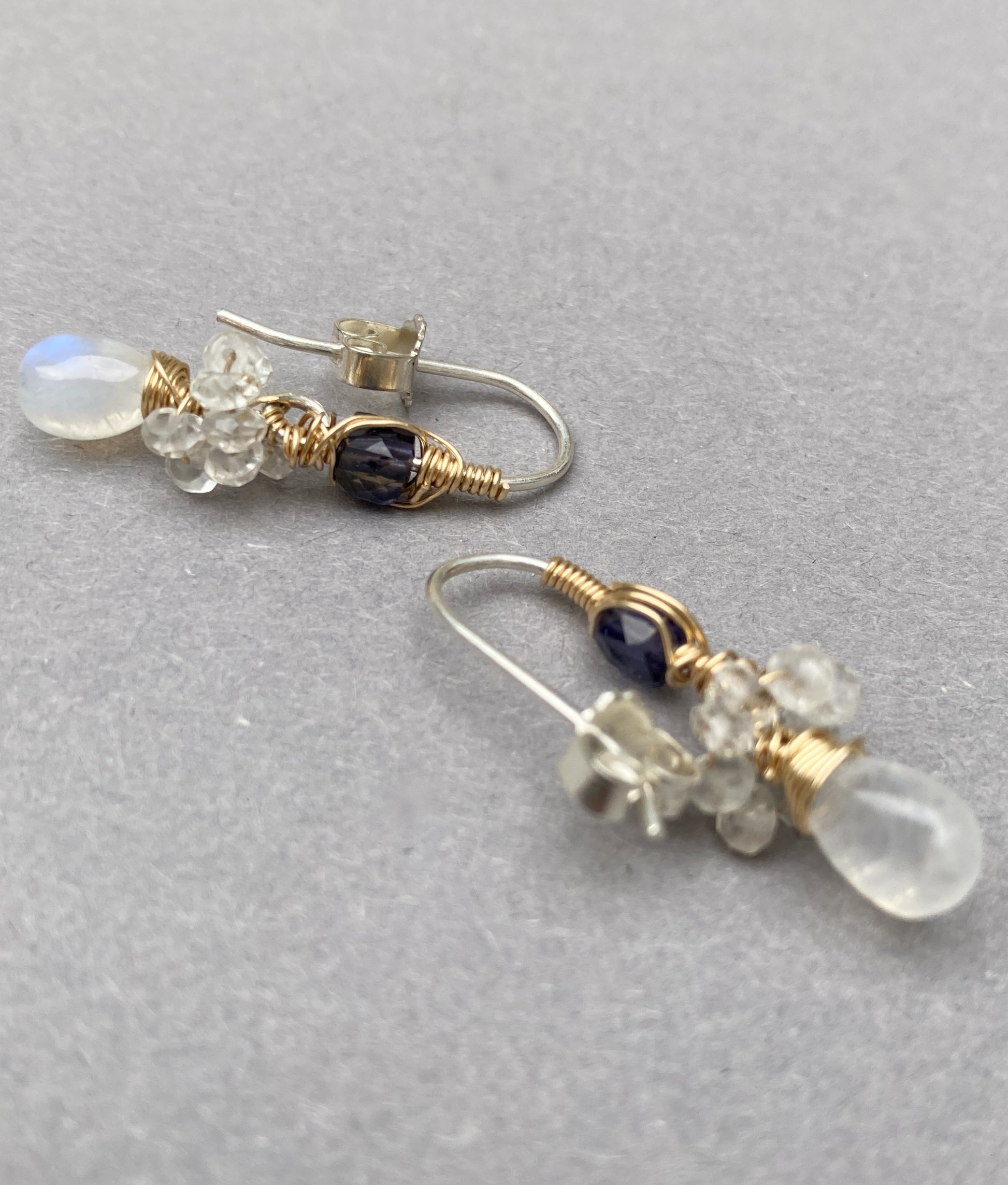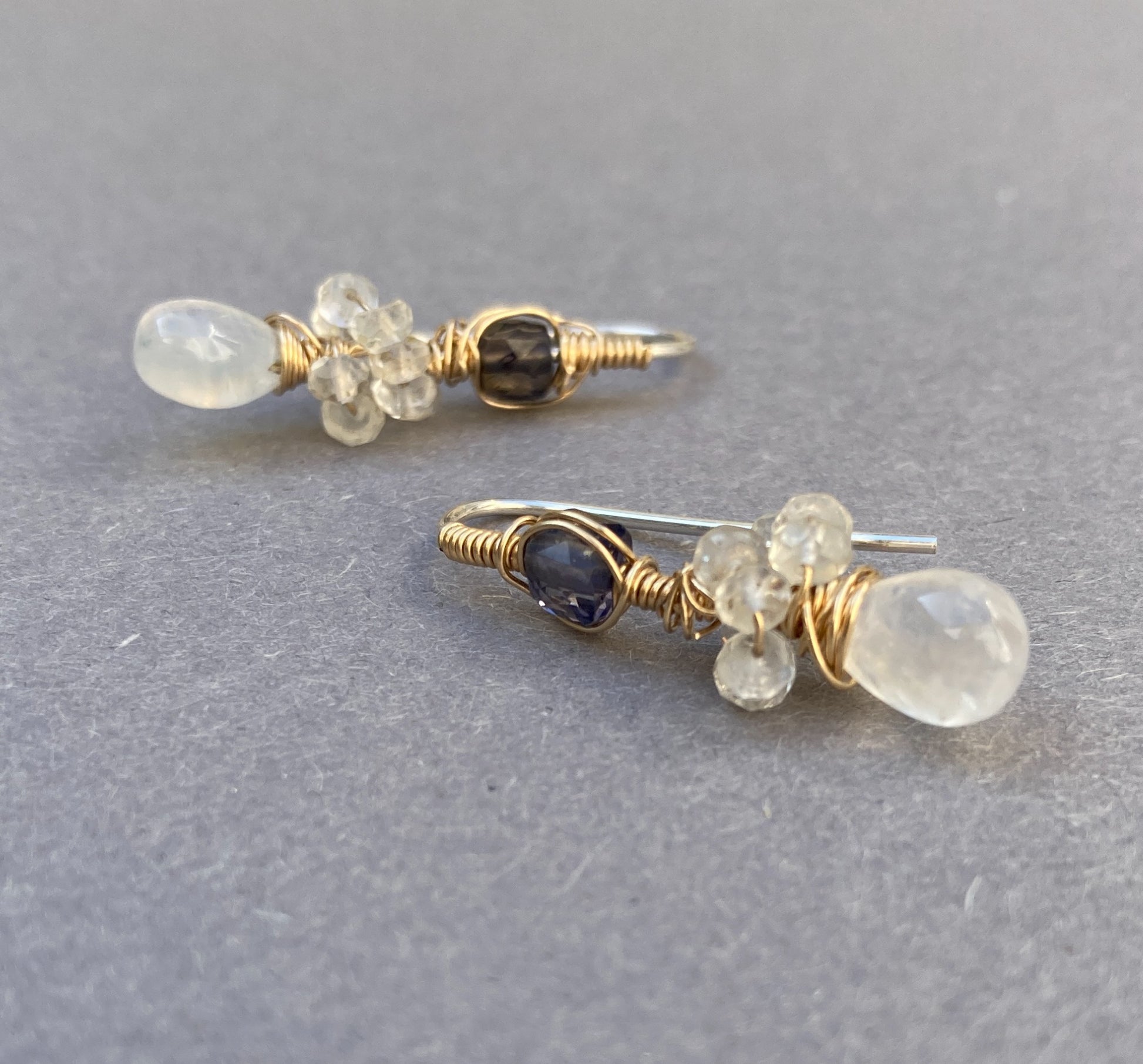 14K Goldfilled oorbellen met Maansteen en Ioliet