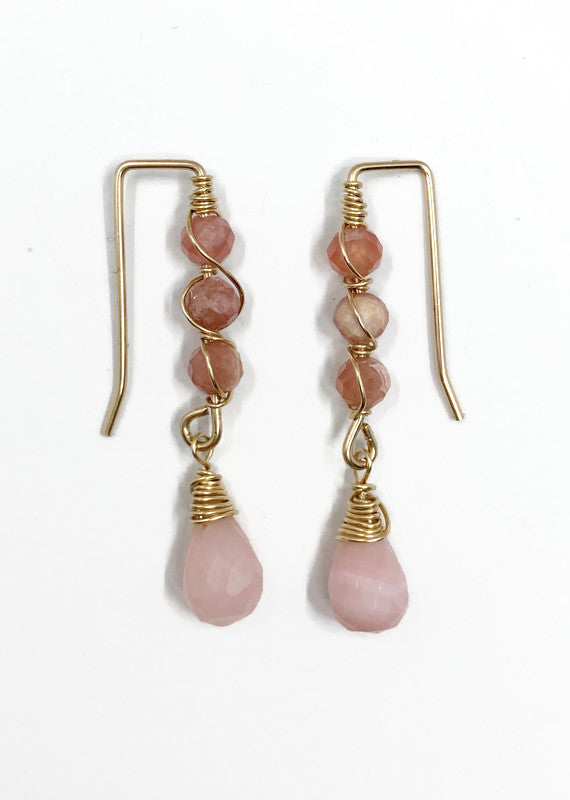 14K Goldfilled oorbellen met Rhodocrosiet en roze Opaal, handgemaakte oorbellen