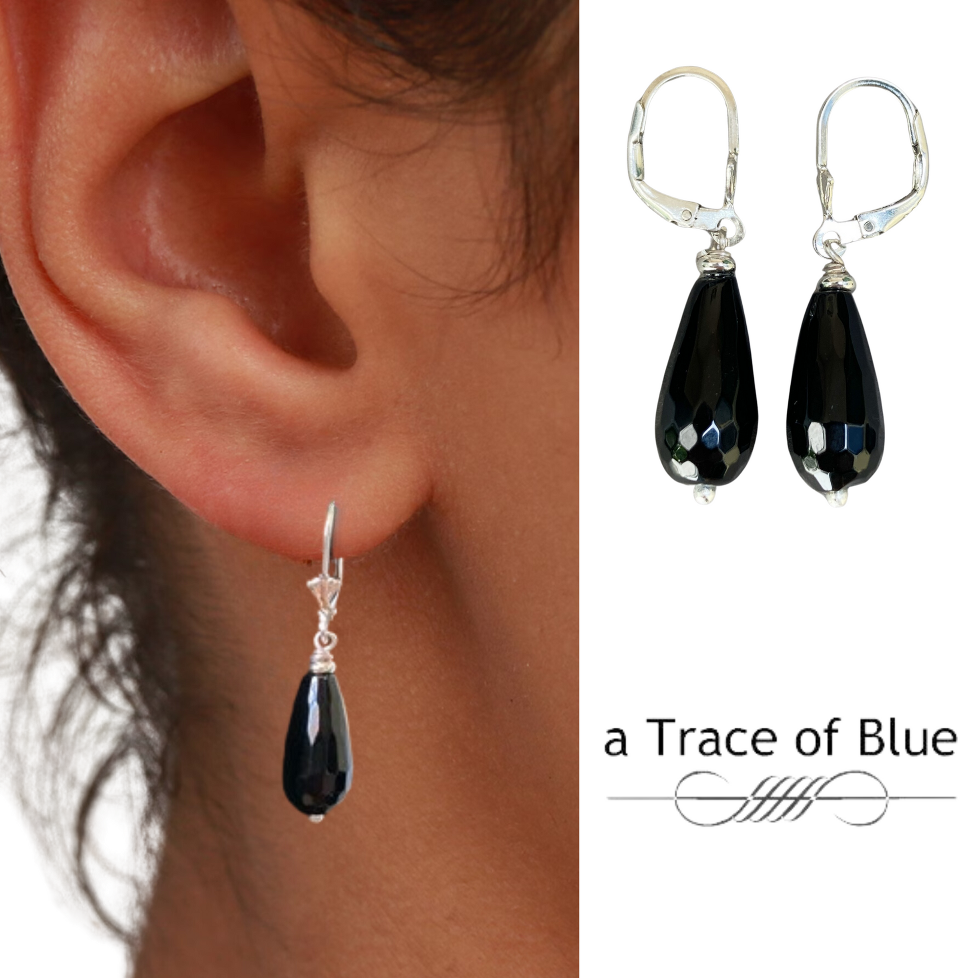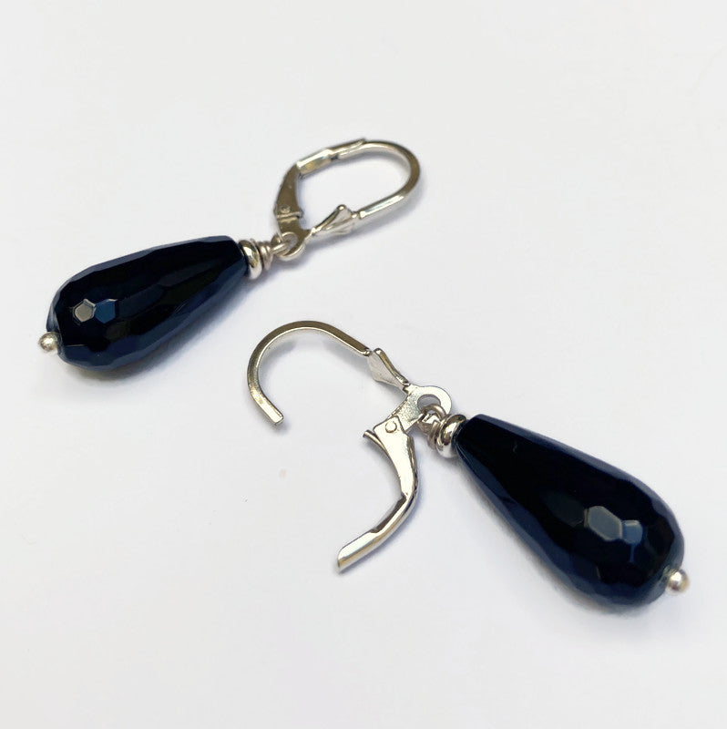 Zwarte Onyx Druppel Oorbellen met Sterling Zilveren klaphaakjes
