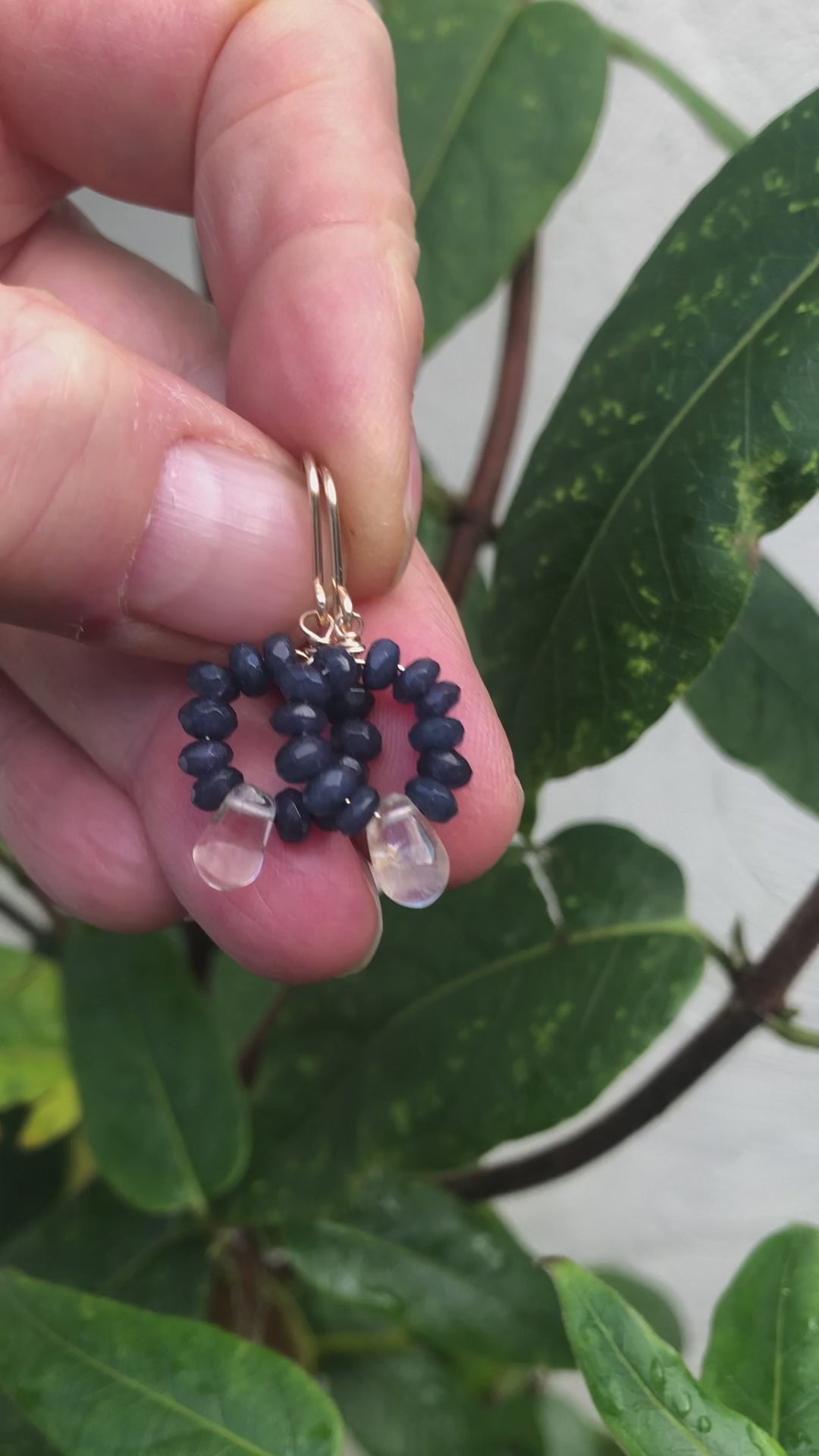 Elegante 14k Goldfilled Oorbellen met Blauwe Jade en Rutielkwarts