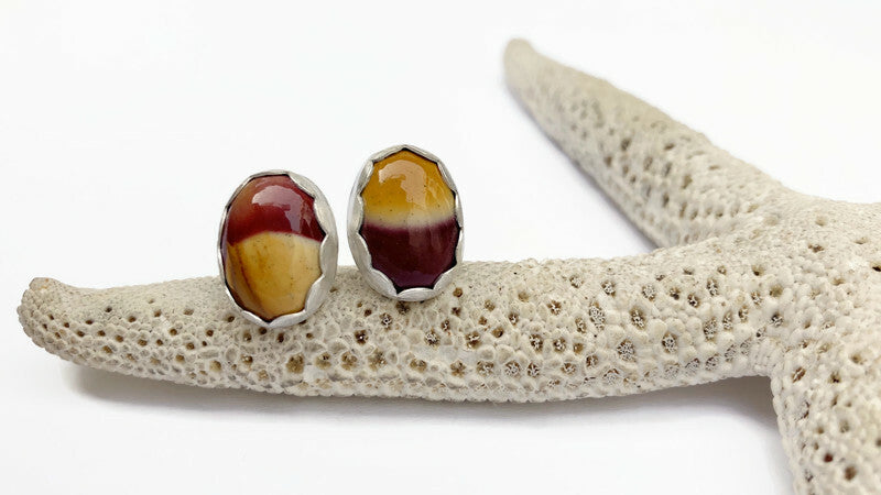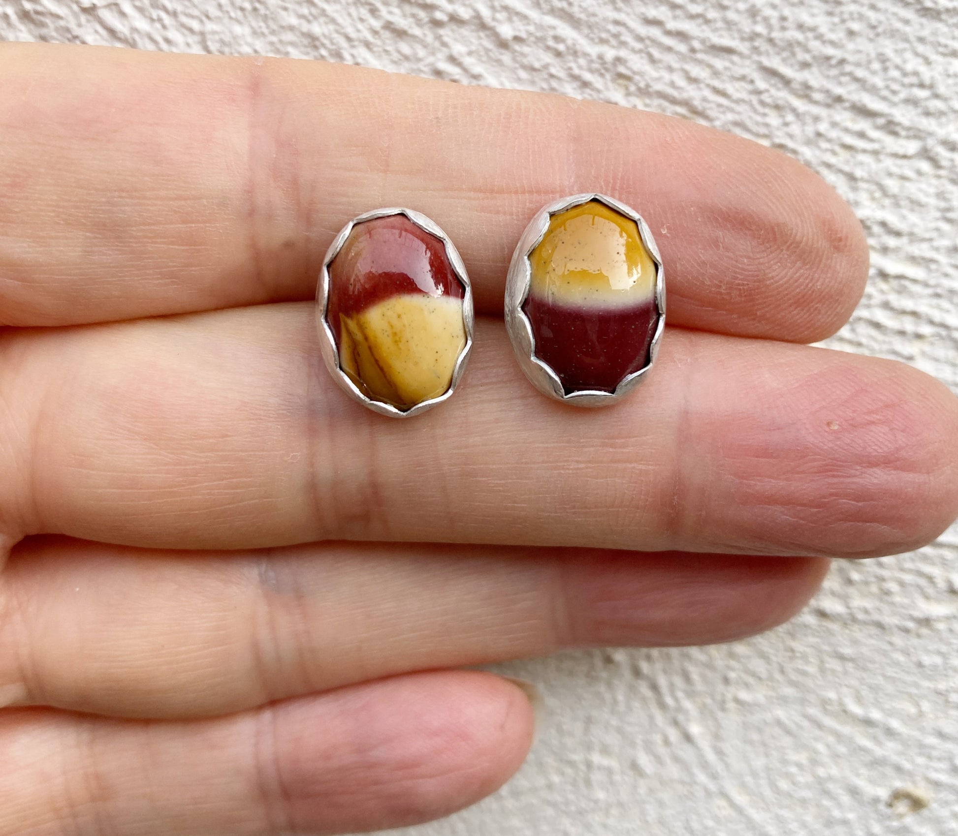 Zilveren oorknopjes met Mookait, ovale oorbellen met edelsteen
