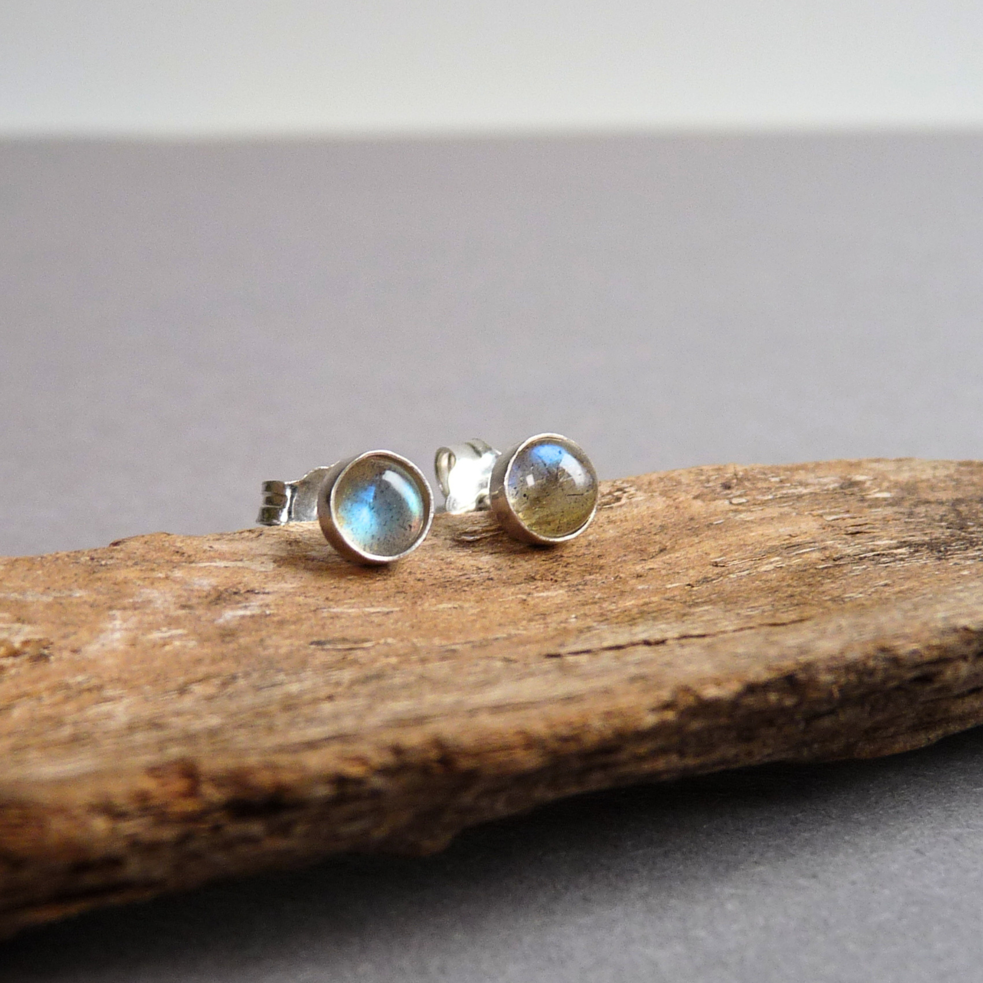 Kleine zilveren oorknopjes met Labradoriet