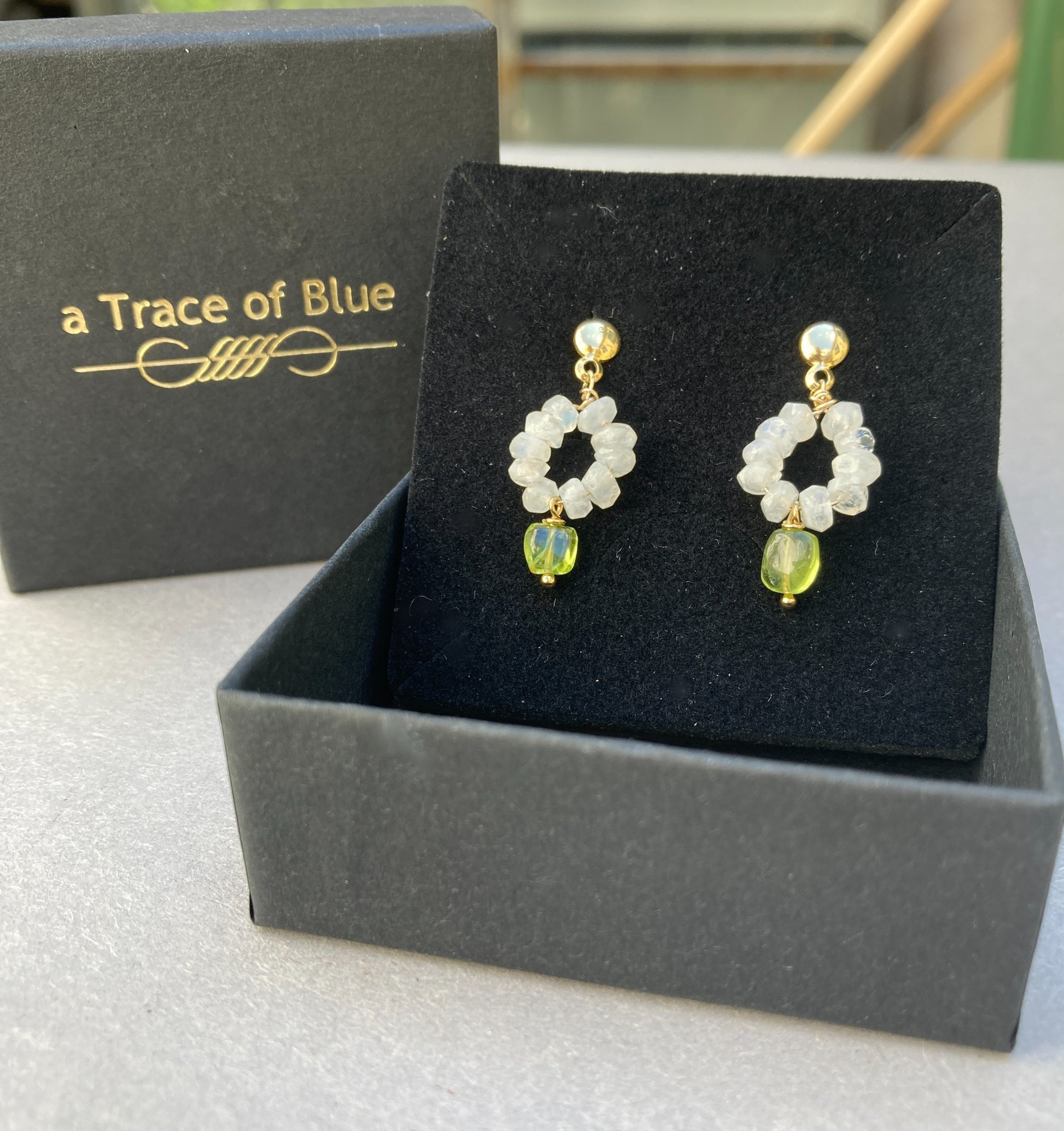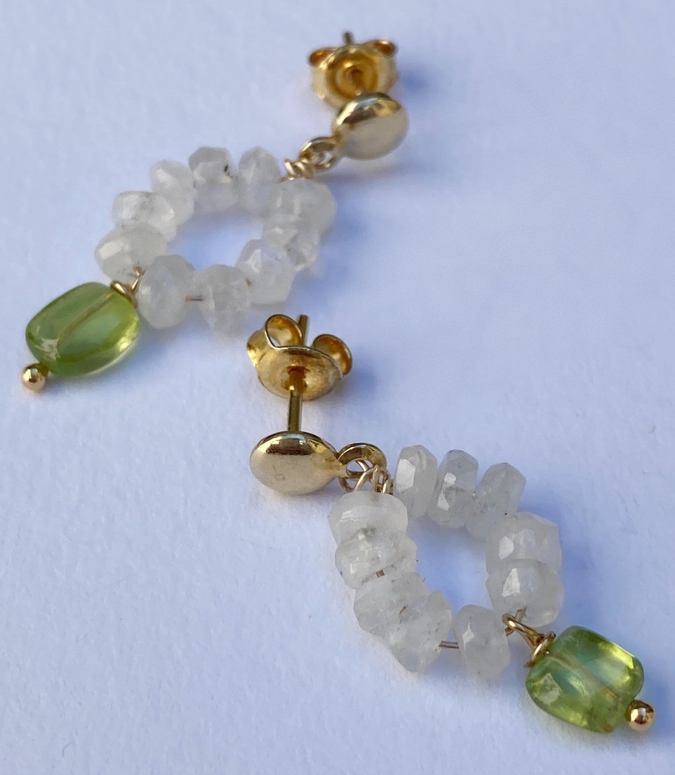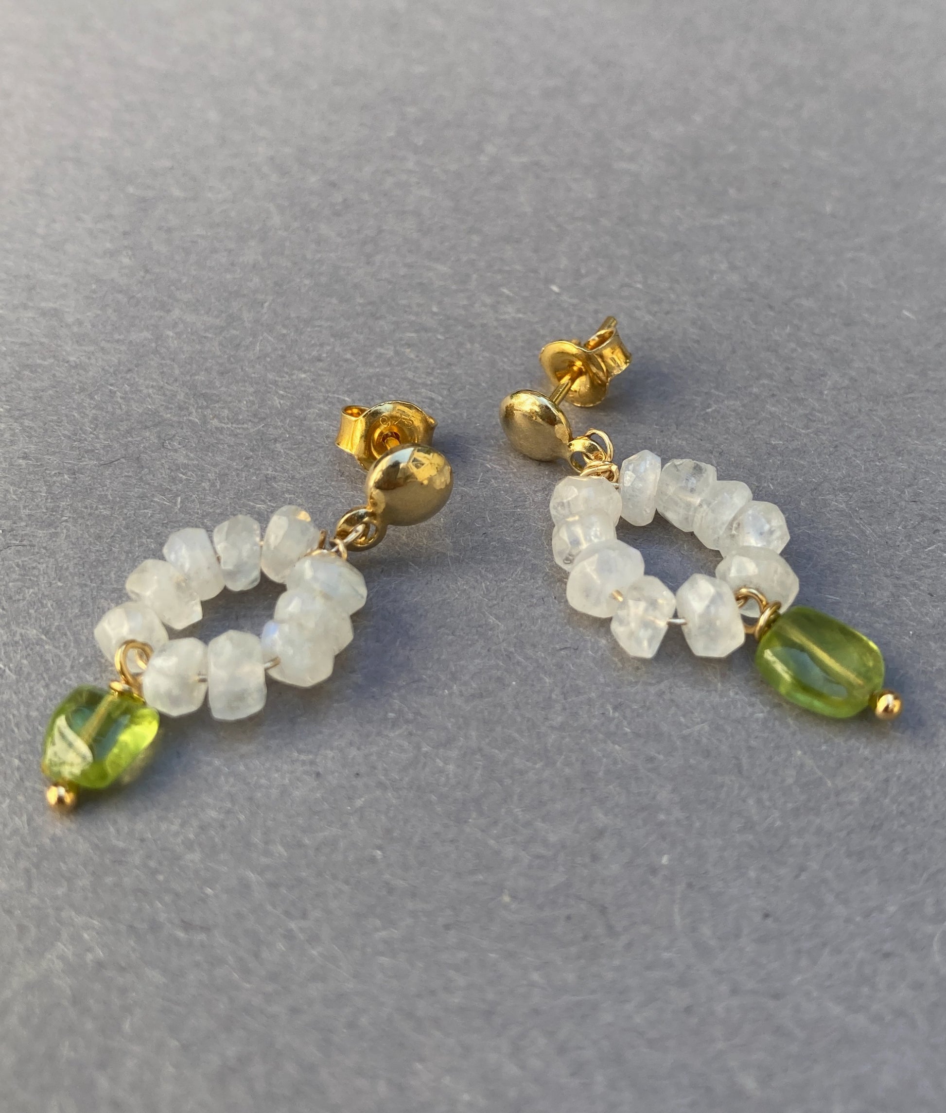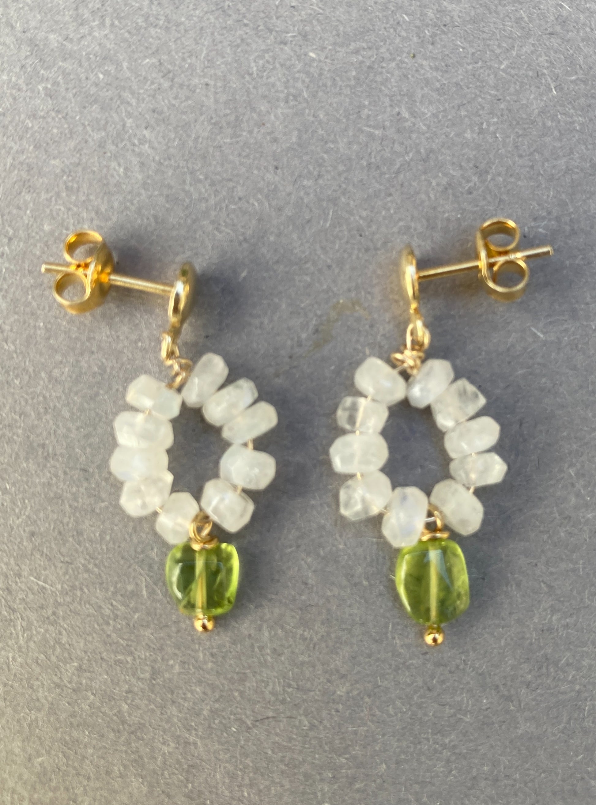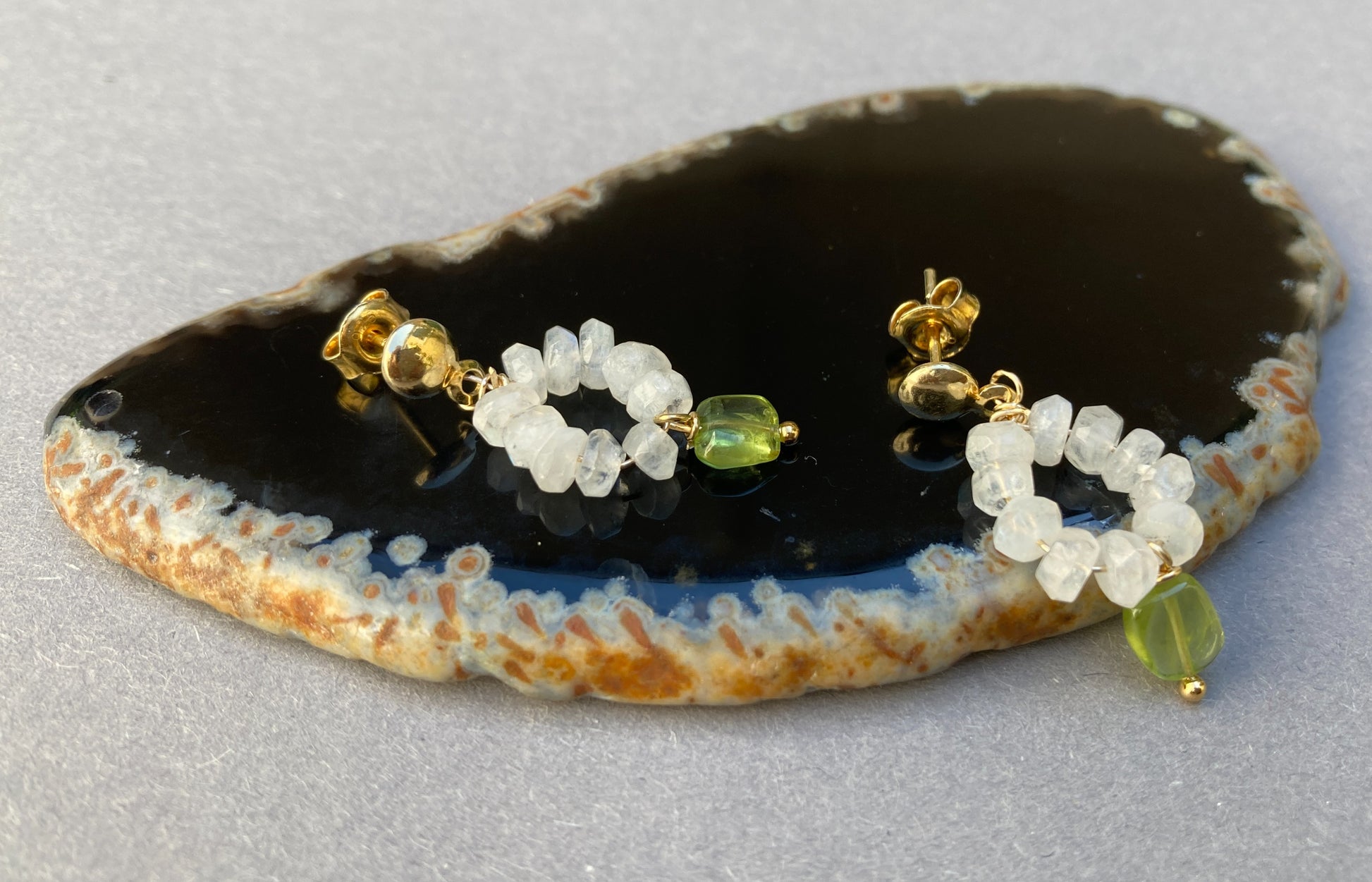 Maansteen en Peridot oorbellen – Handgemaakt in Enkhuizen