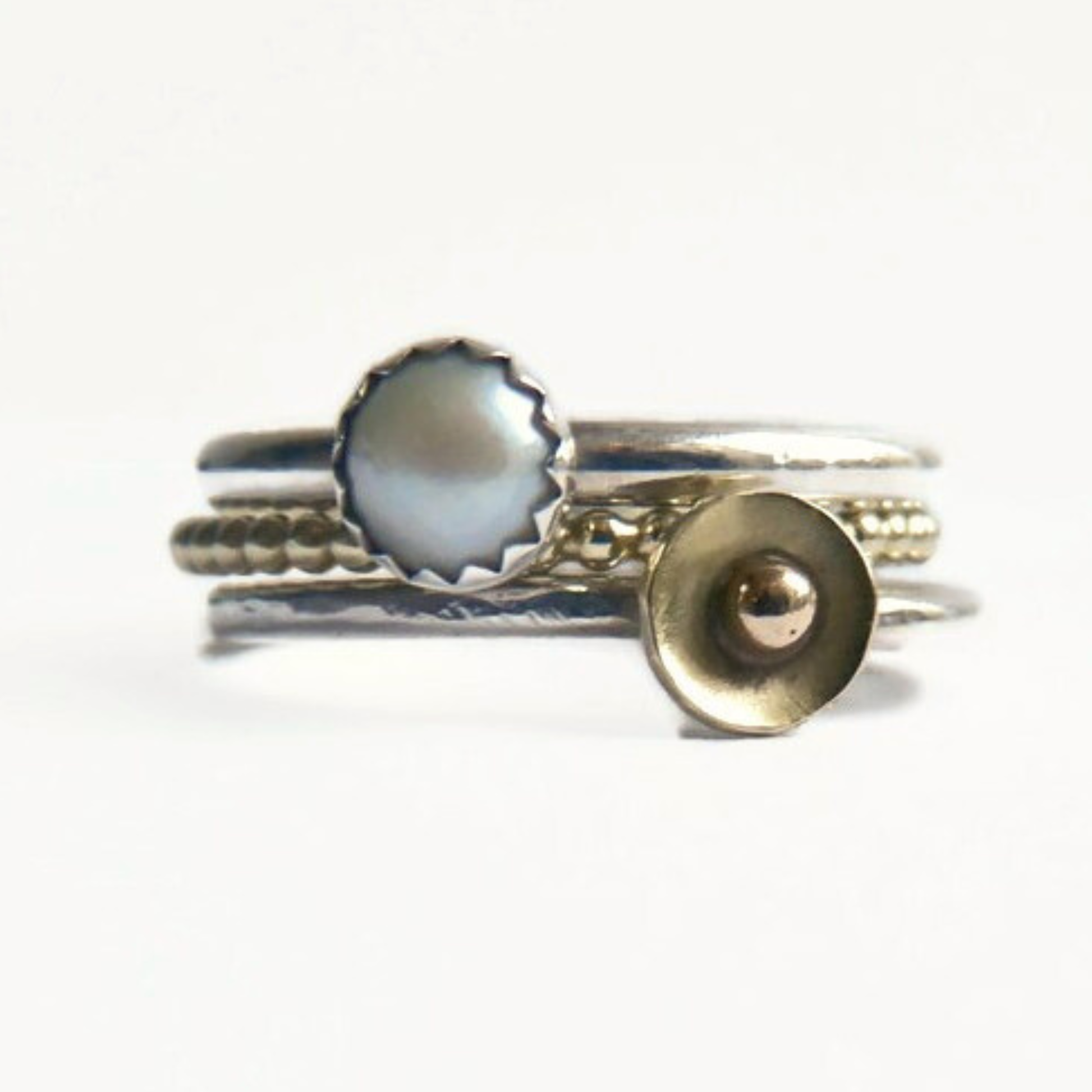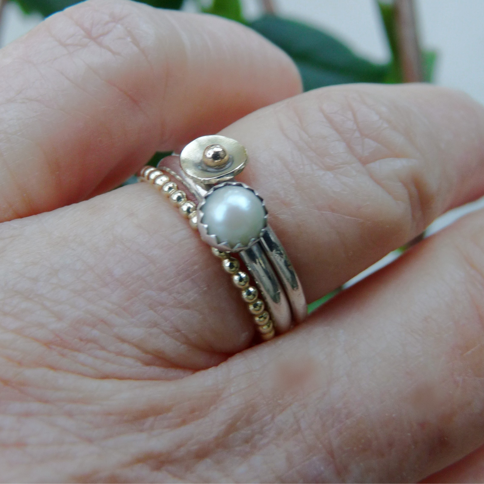 Stapelringen set van zilver en 14k goud met parel – Handgemaakt | Zonlicht Set