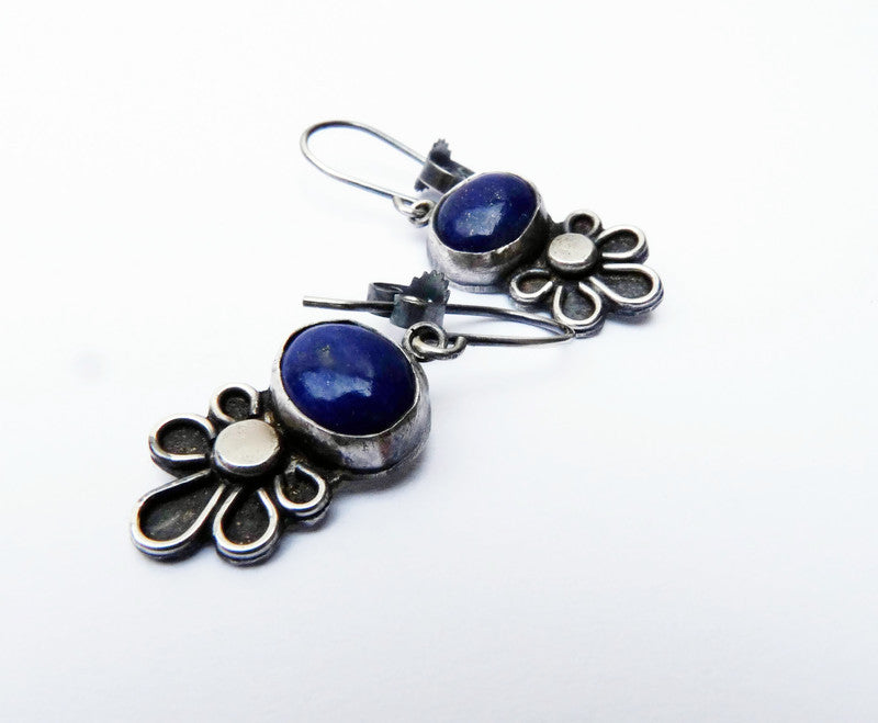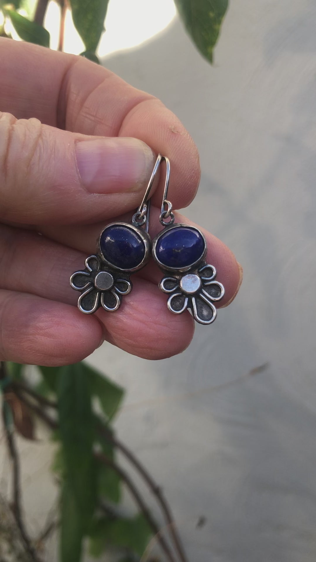 Omarm je innerlijke bohemien met onze handgemaakte Sterling zilveren Lapis Lazuli bloem oorbellen