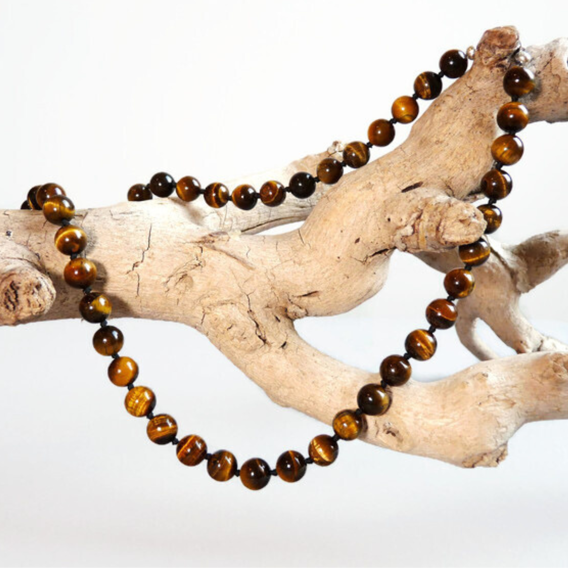 De warme bruin-gouden tinten van Tijgeroog vallen subtiel op wanneer het licht erop komt, maar blijven rustig op afstand. Daardoor voelt de ketting meteen vertrouwd – je merkt dat je iets draagt, maar het voelt niet overdreven of geforceerd.