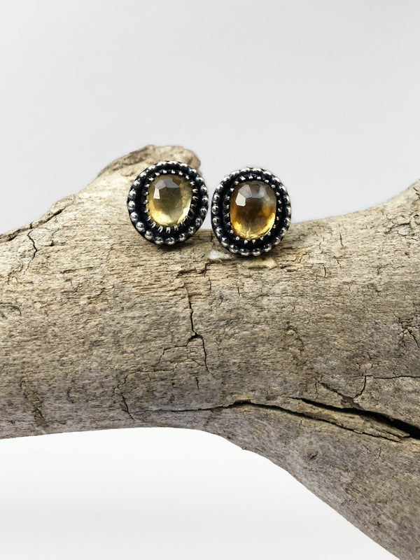 Vintage Citrien Oorstekers in Geoxideerd Zilver