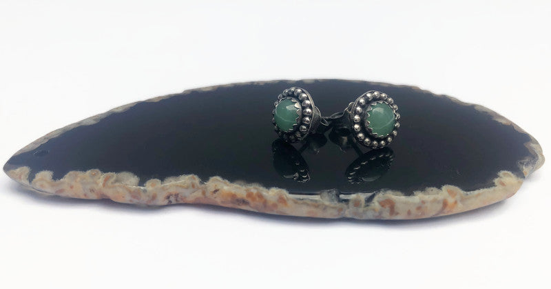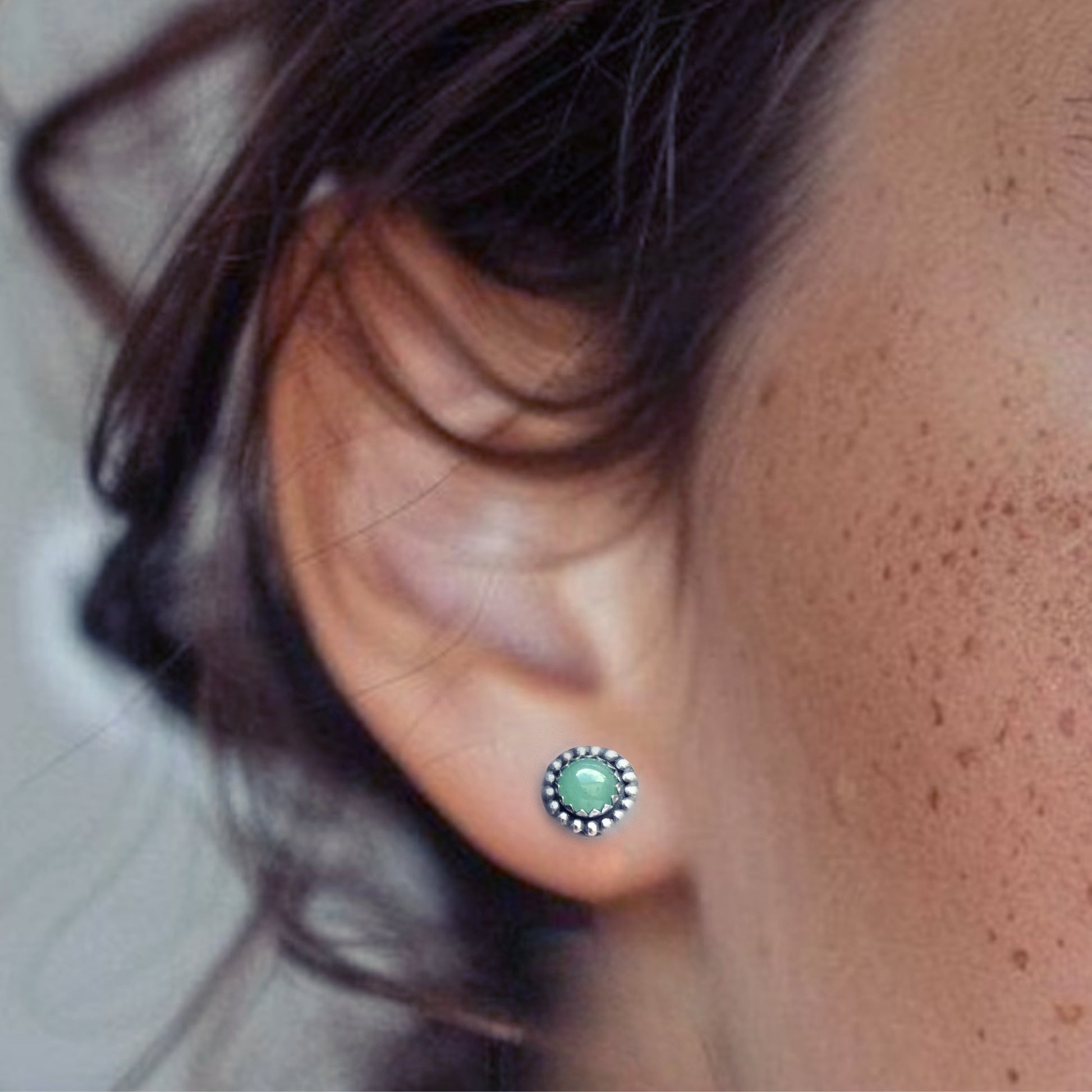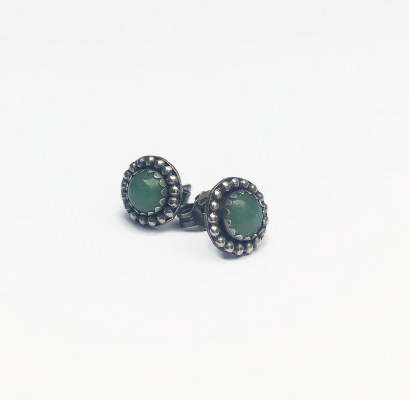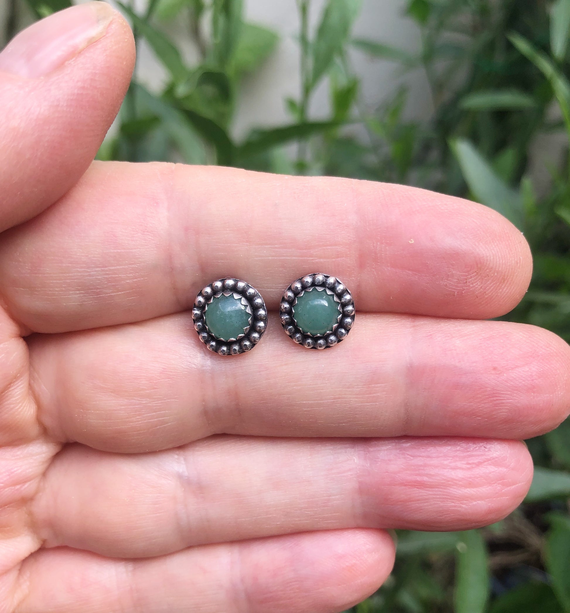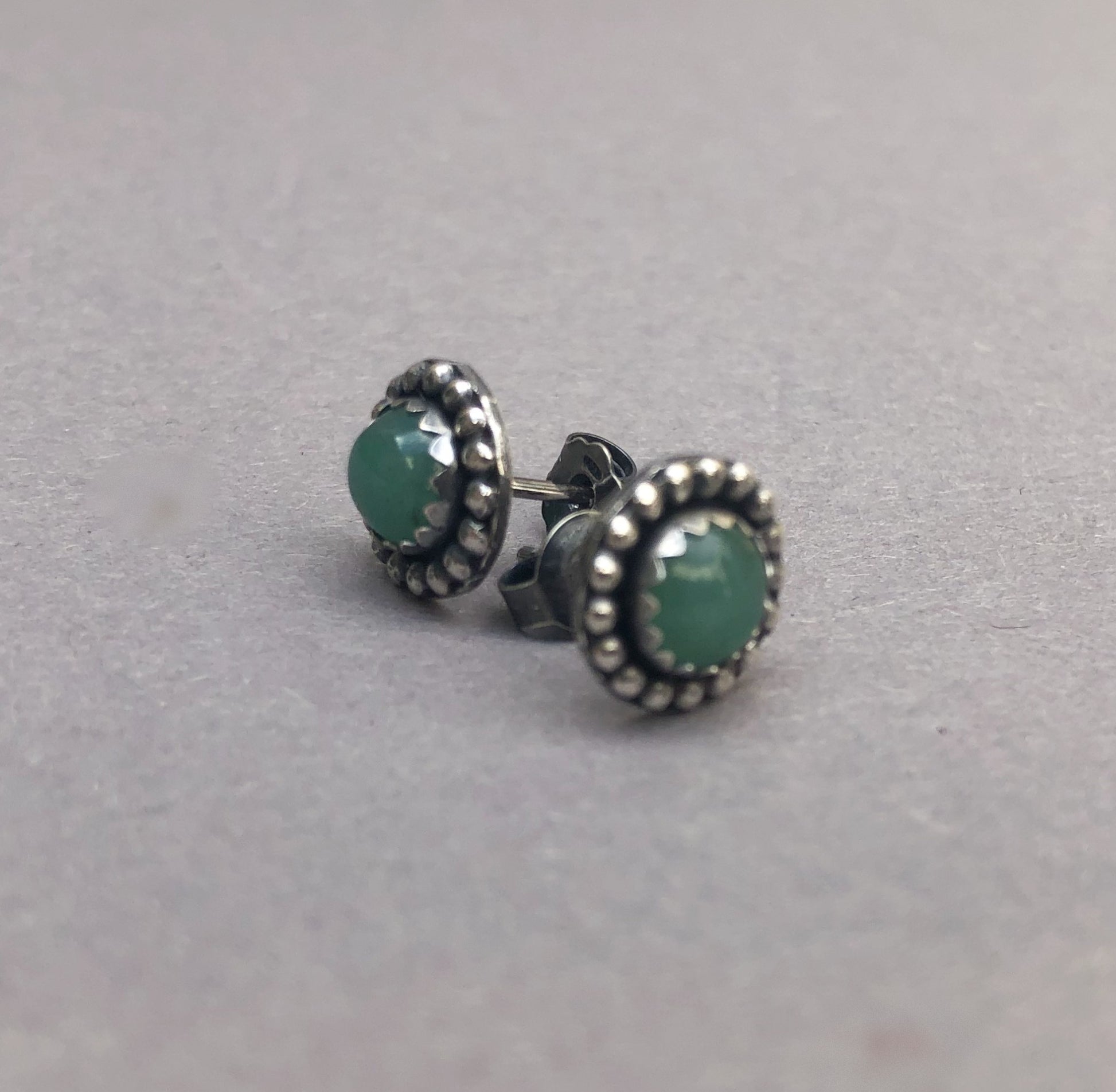 Zilveren Aventurijn oorknopjes – handgemaakte minimalistische oorbellen