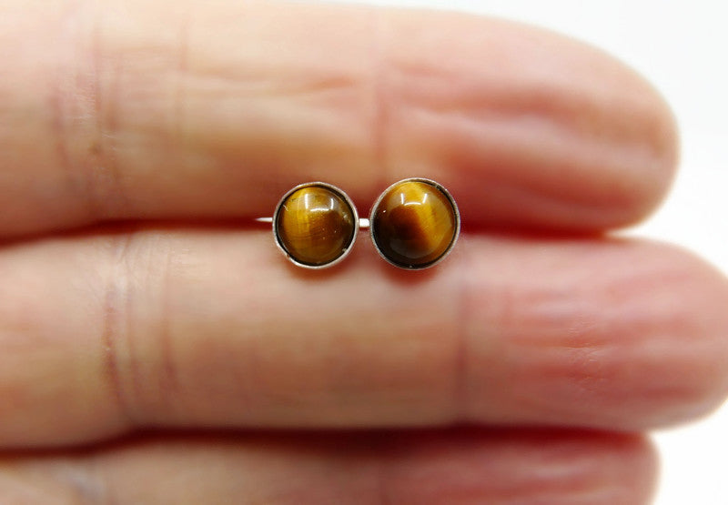 Ontdek deze stoere en stijlvolle zilveren heren oorknopjes met 6 mm Tijgeroog, zorgvuldig gezet in elegante sterling zilveren zetting. Deze handgemaakte mannen oorbellen combineren tijdloos design met de krachtige uitstraling van edelsteen.